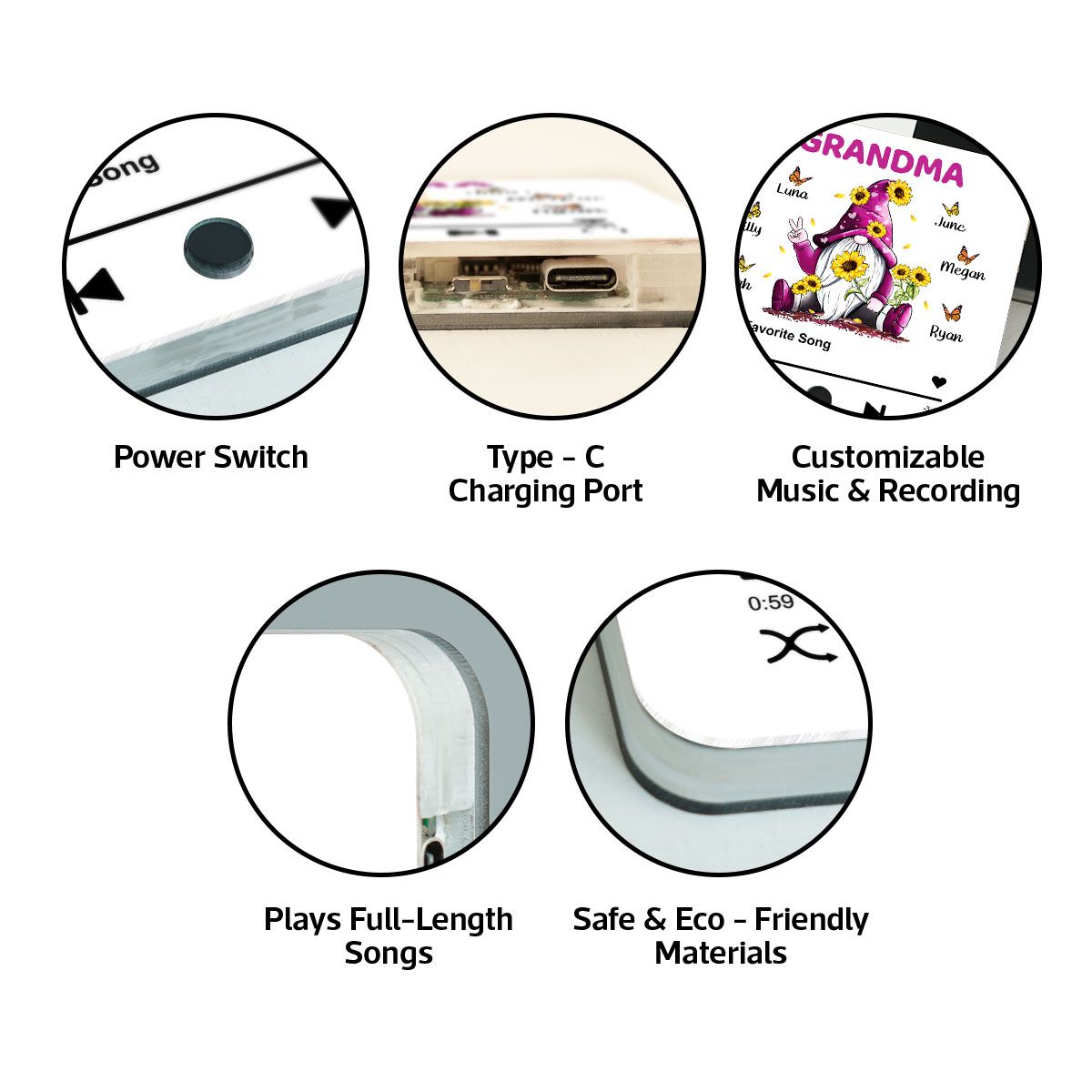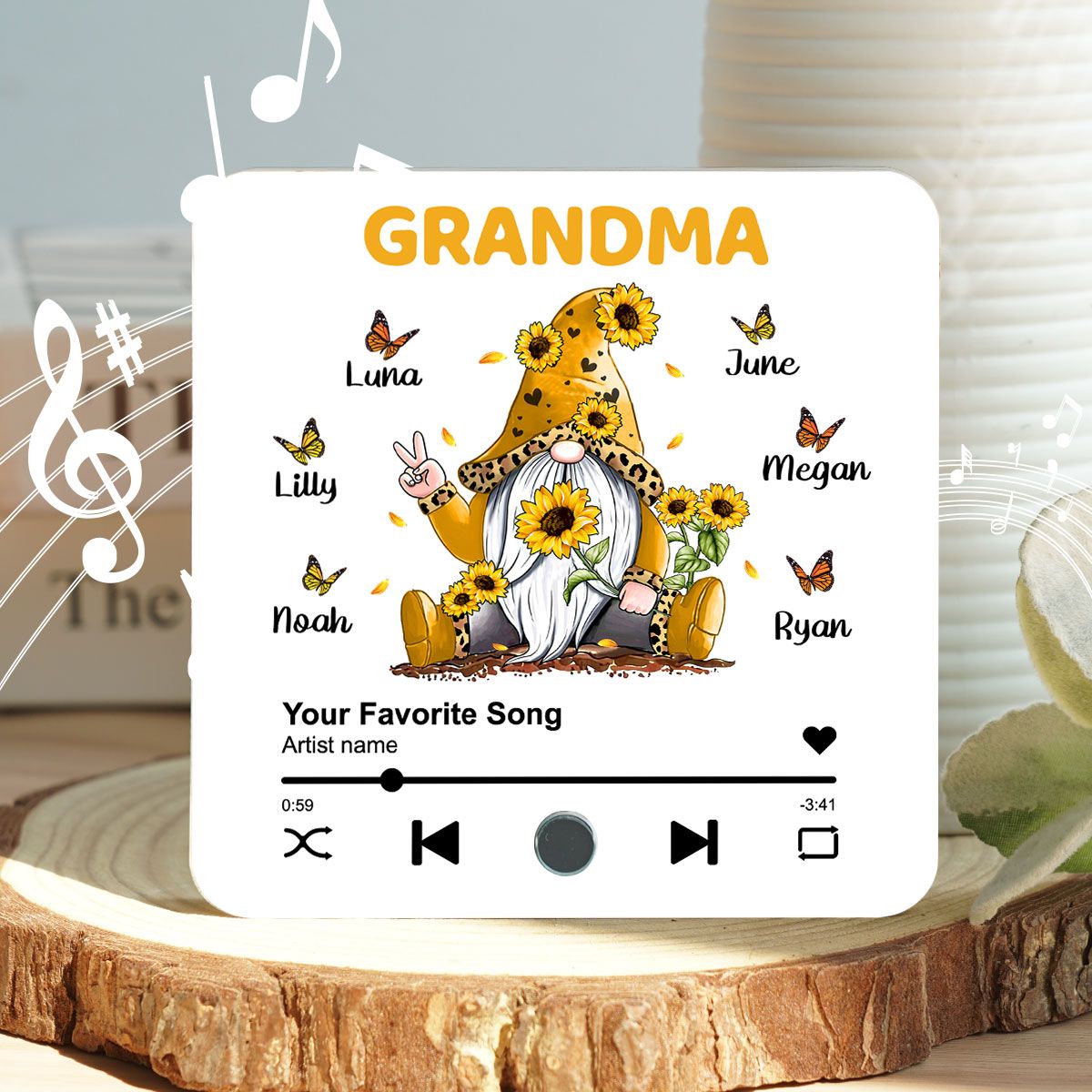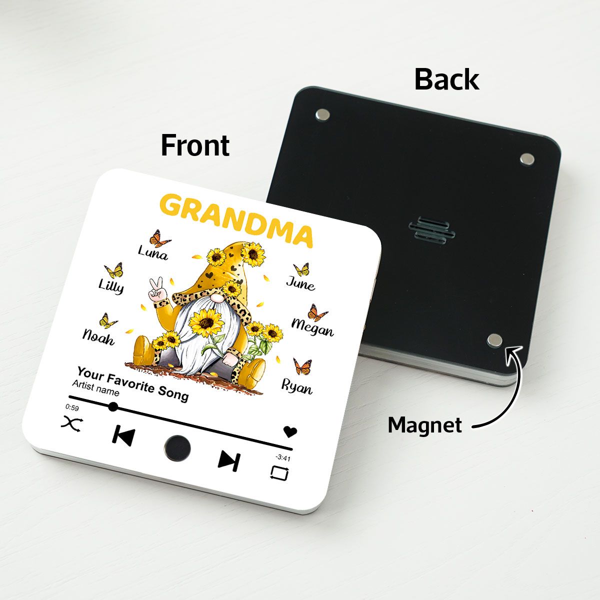 Sunflower Gnome Butterflies Grandma With Grandkids Personalized Music Fridge Magnet, Heartfelt Mother's Day Gift For Mom For Grandma
