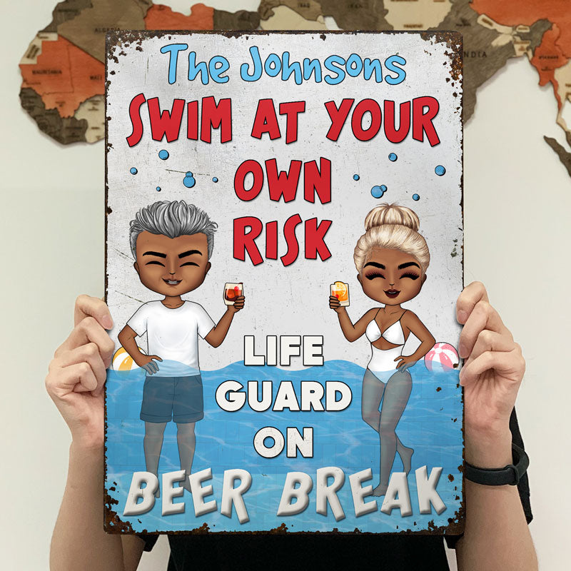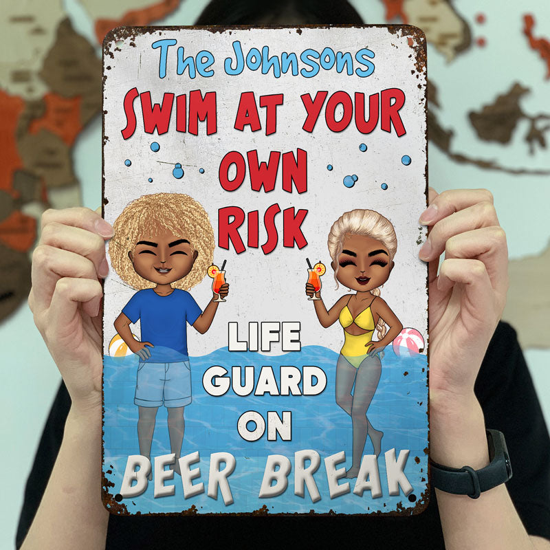 Swimming Pool Swim At Your Own Risk - Personalized Custom Classic Metal Signs