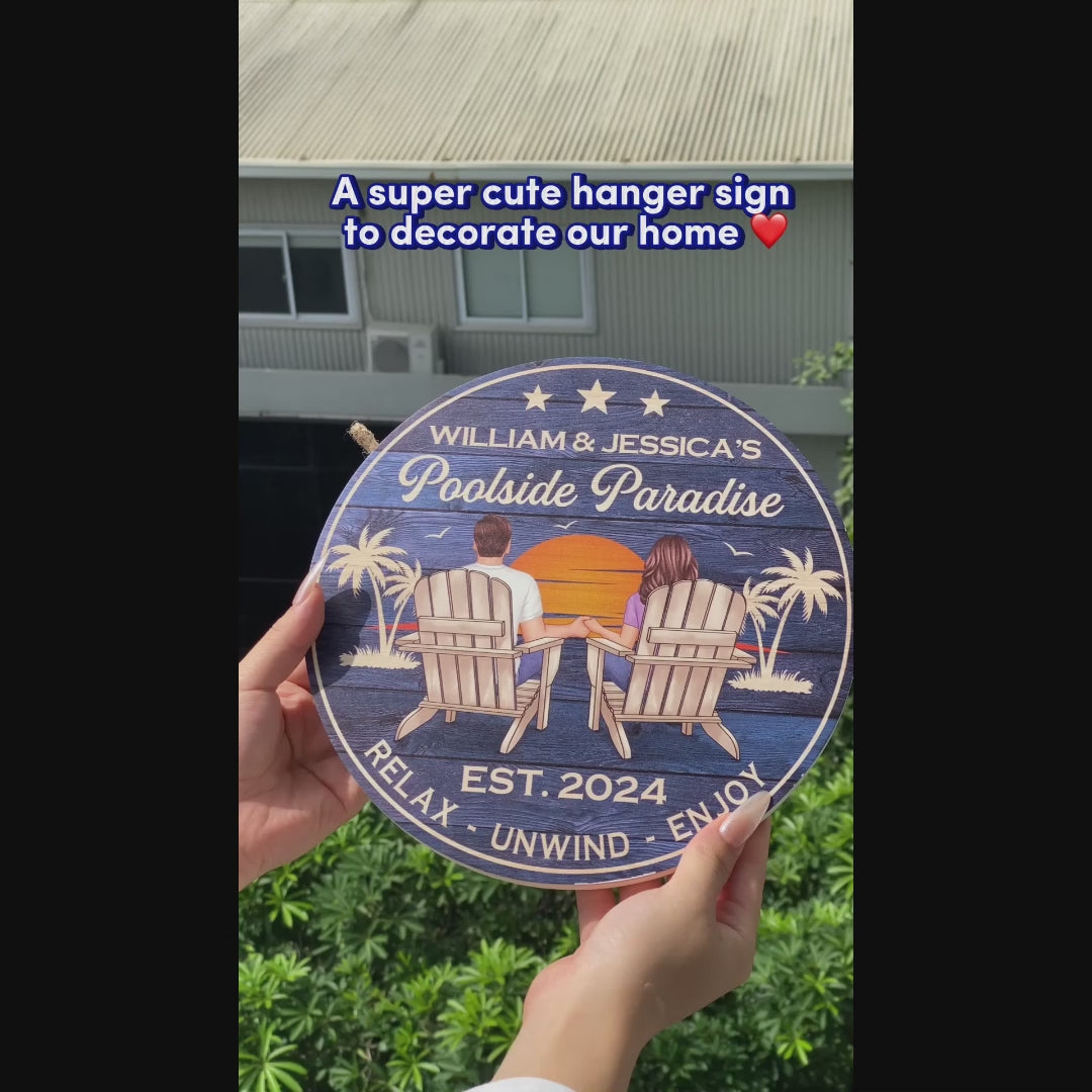 Swimming Pool Zone Decor Couple Sitting Personalized Wood Sign, Housewarming Anniversary Gift For Him, Her