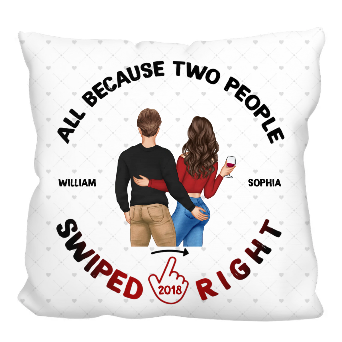 Back View Couple Swiped Right - Gift For Couples - Personalized Polyester Linen Pillow