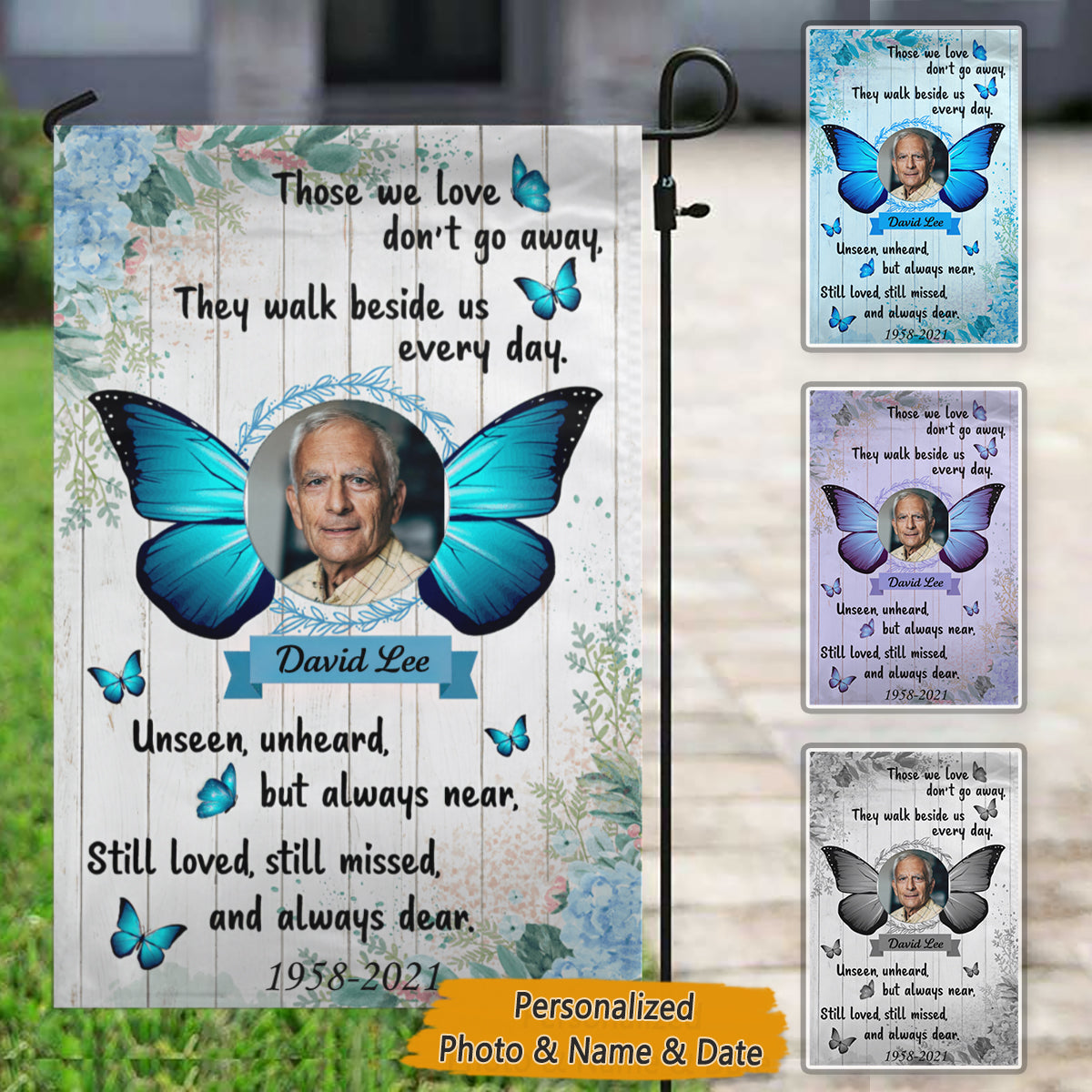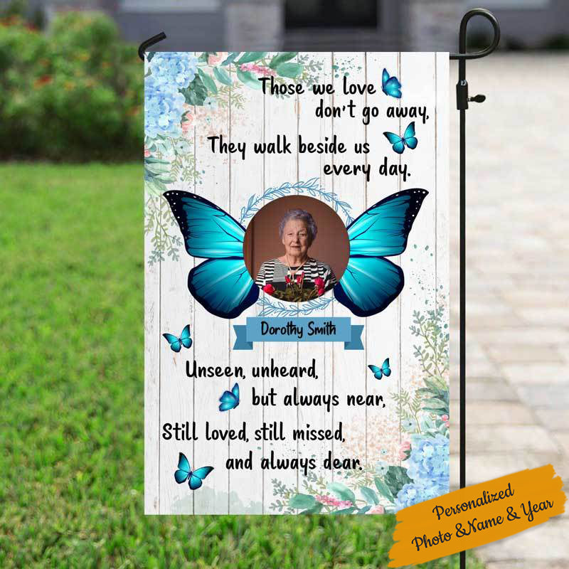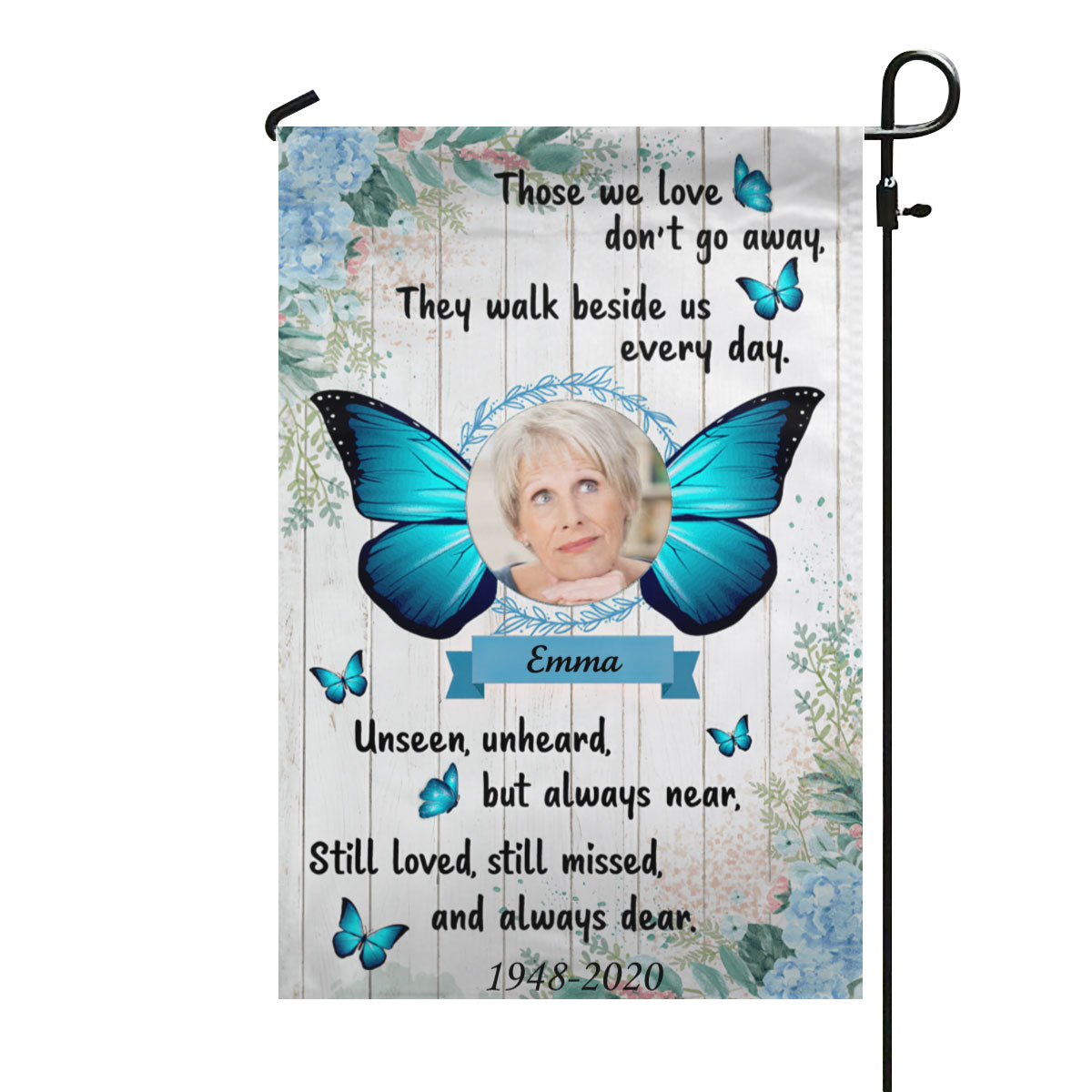Those We Love Don't Go Away Memorial Photo Personalized Garden Flag