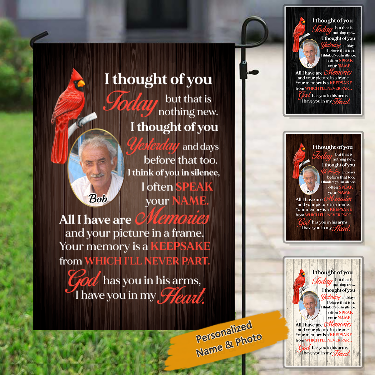 Thought Of You Today Memorial Personalized Cardinal Flag for Graves