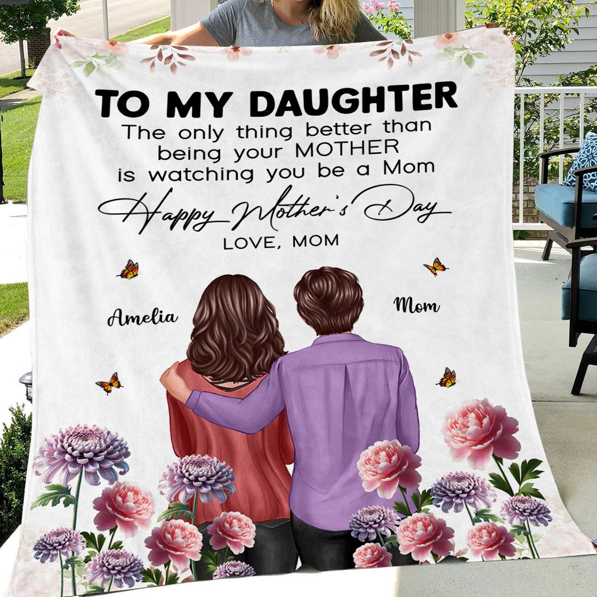 To My Daughter From Mom Happy Mother's Day Birth Flower Personalized Fleece Blanket, Mother's Day Gift For Daughter