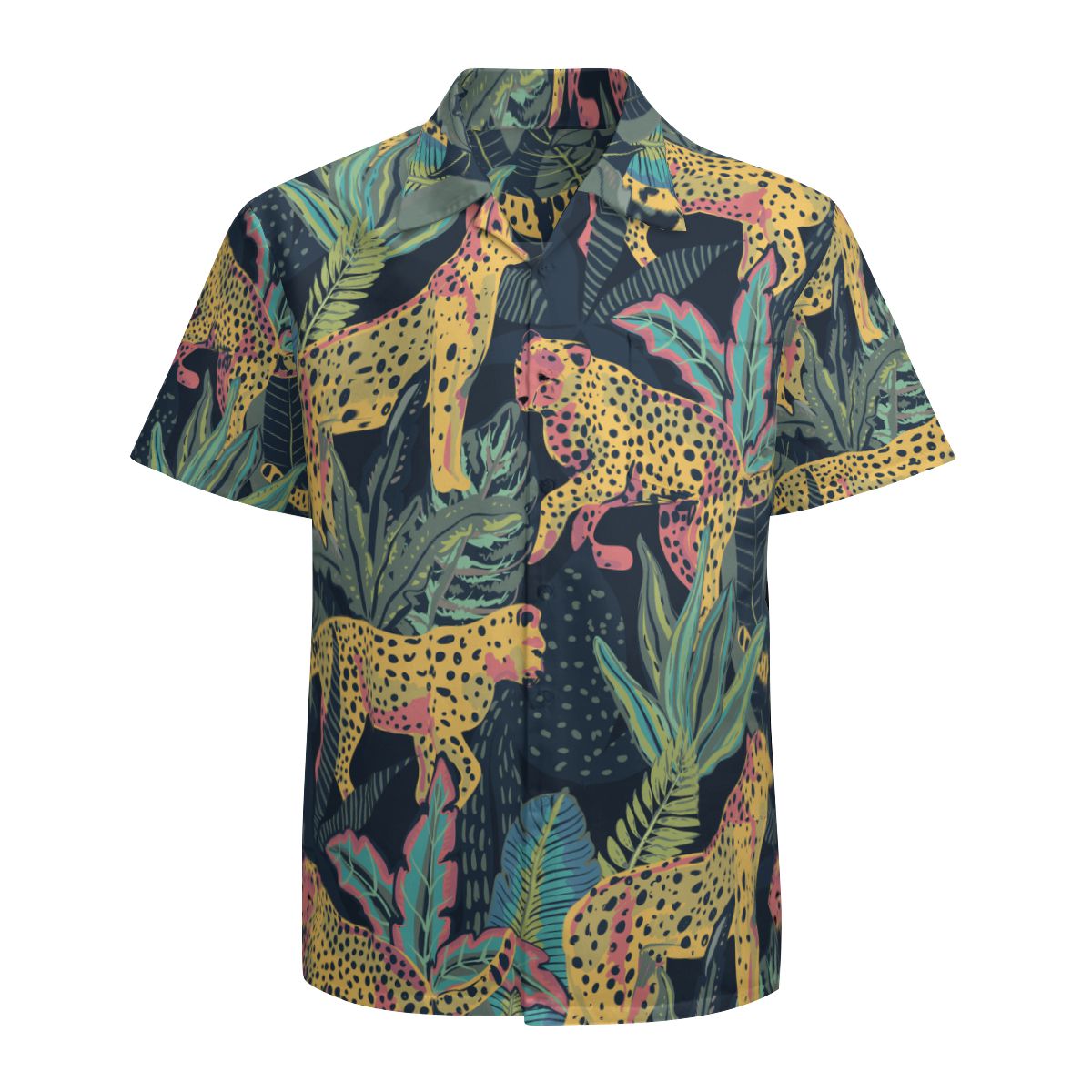 - Short sleeve, lapel collar, button closure