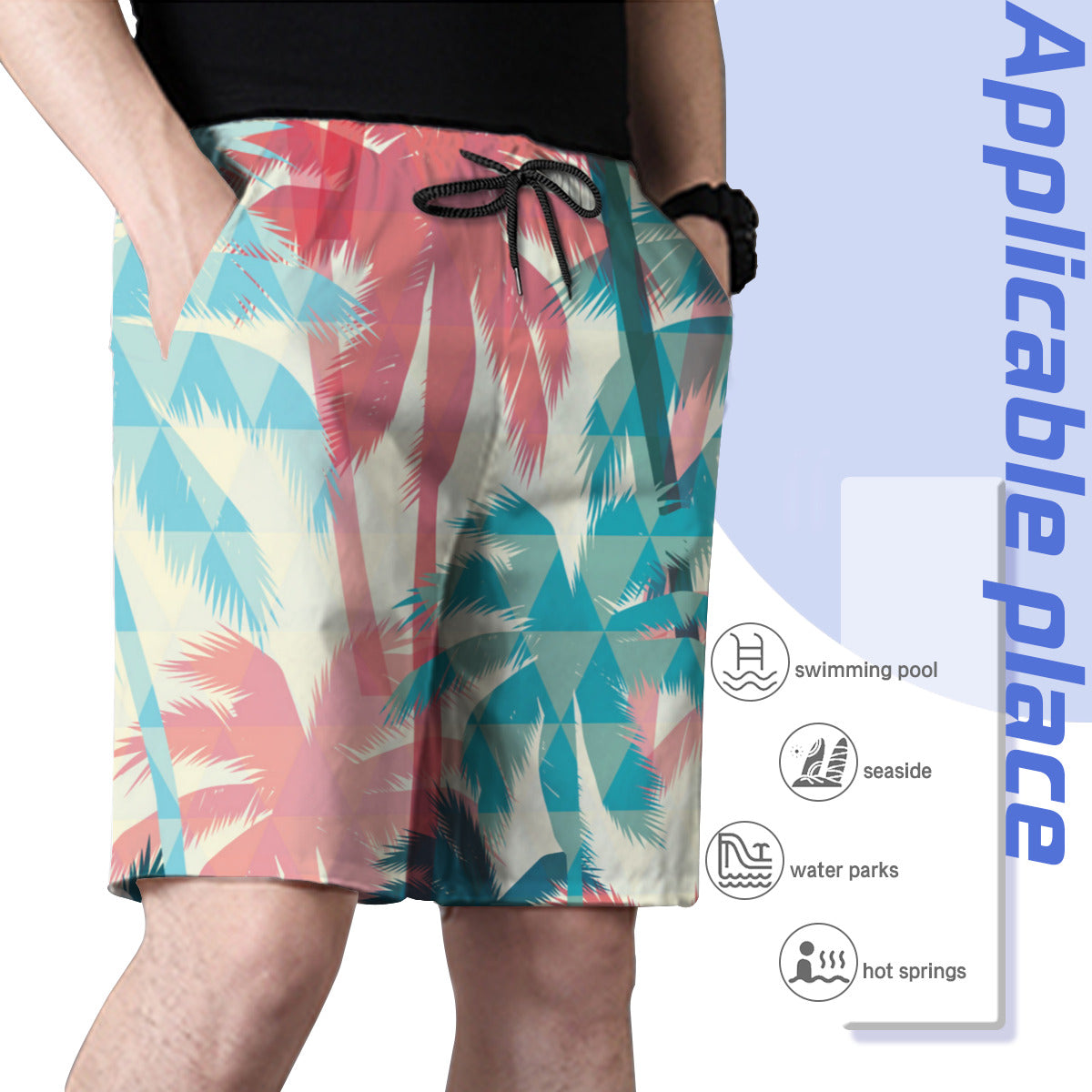 Material: 100% polyester, wearing comfortable and casual. Mesh lining featured. Relaxed-fit, suitable for daily wear or swimming.