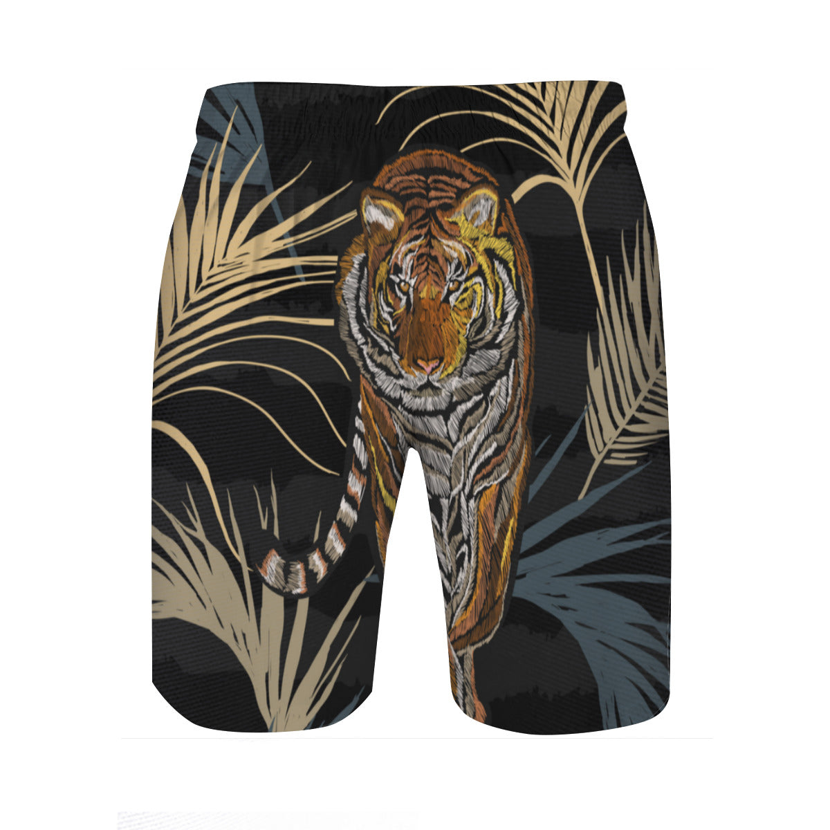 Tropical Leaves Tiger 3 Men's Swim Trunks No.I7VQGI