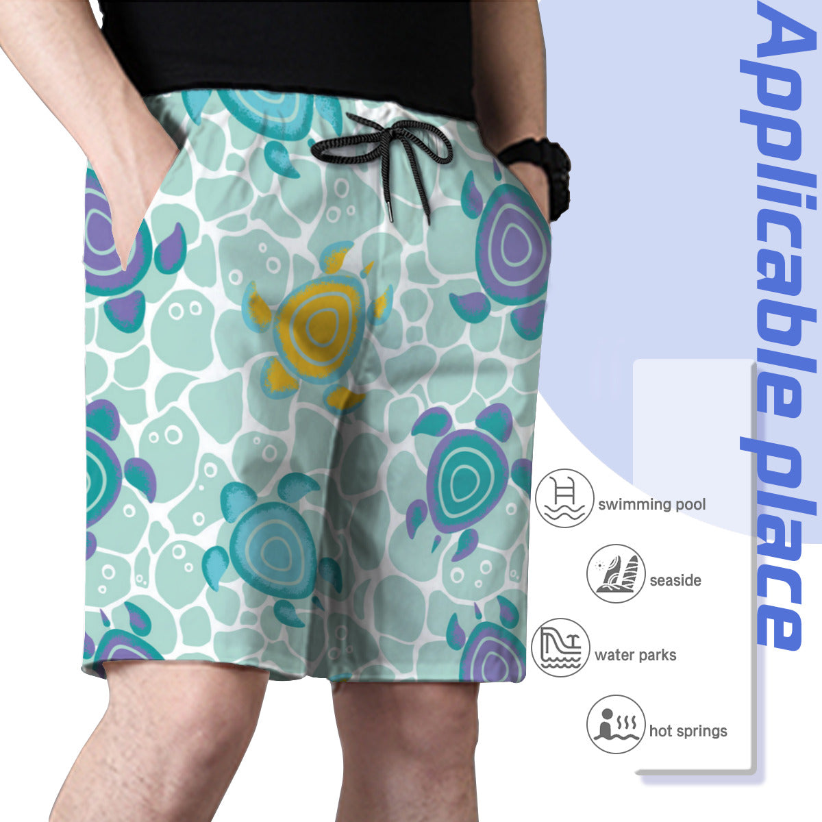 Material: 100% polyester, wearing comfortable and casual. Mesh lining featured. Relaxed-fit, suitable for daily wear or swimming.