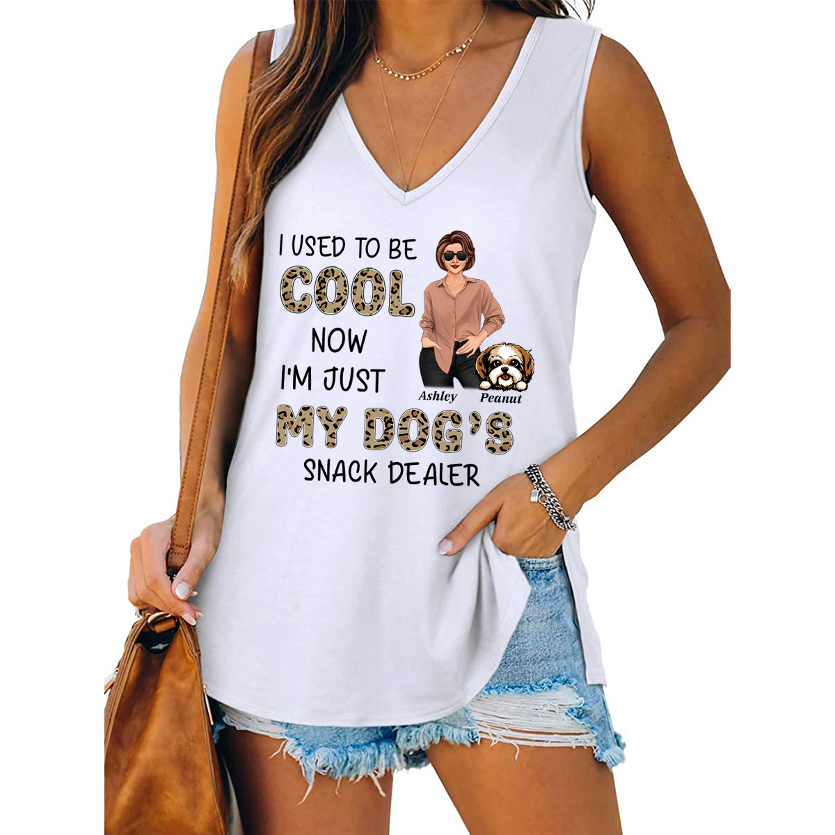 Used To Be Cool Now Dogs Snack Dealer Posing Woman Personalized Women Tank Top V Neck Casual Flowy Sleeveless