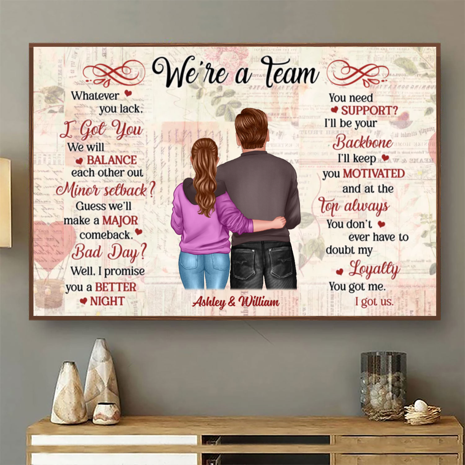 We‘re A Team Couple Back View Standing Old Paper Personalized Horizontal Poster