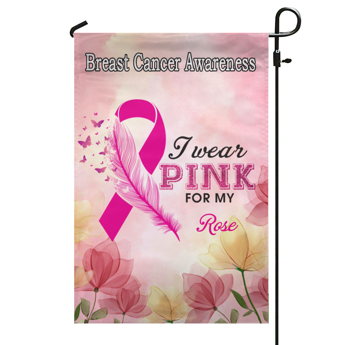 Wear Pink Feather Breast Cancer Personalized Name Garden Flag