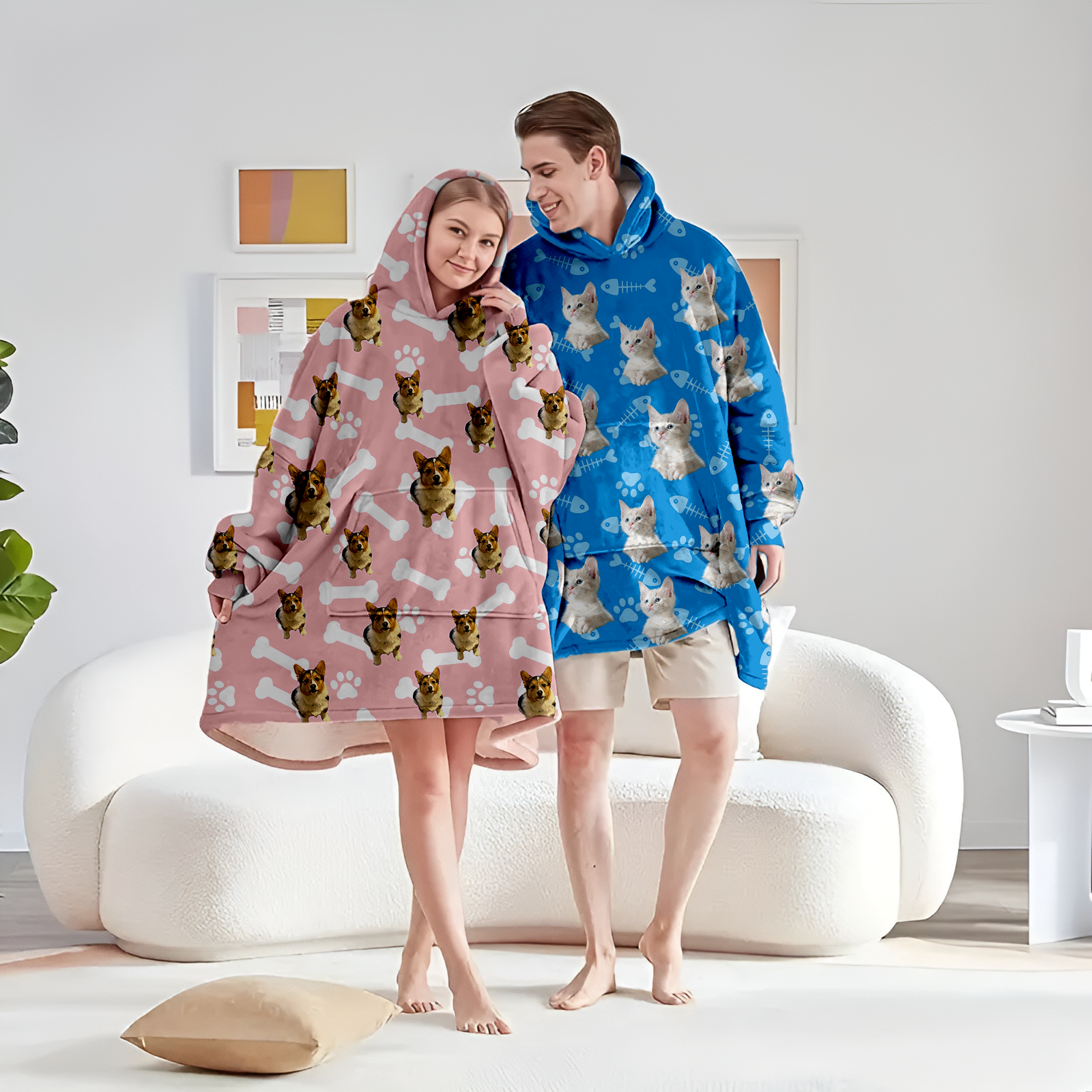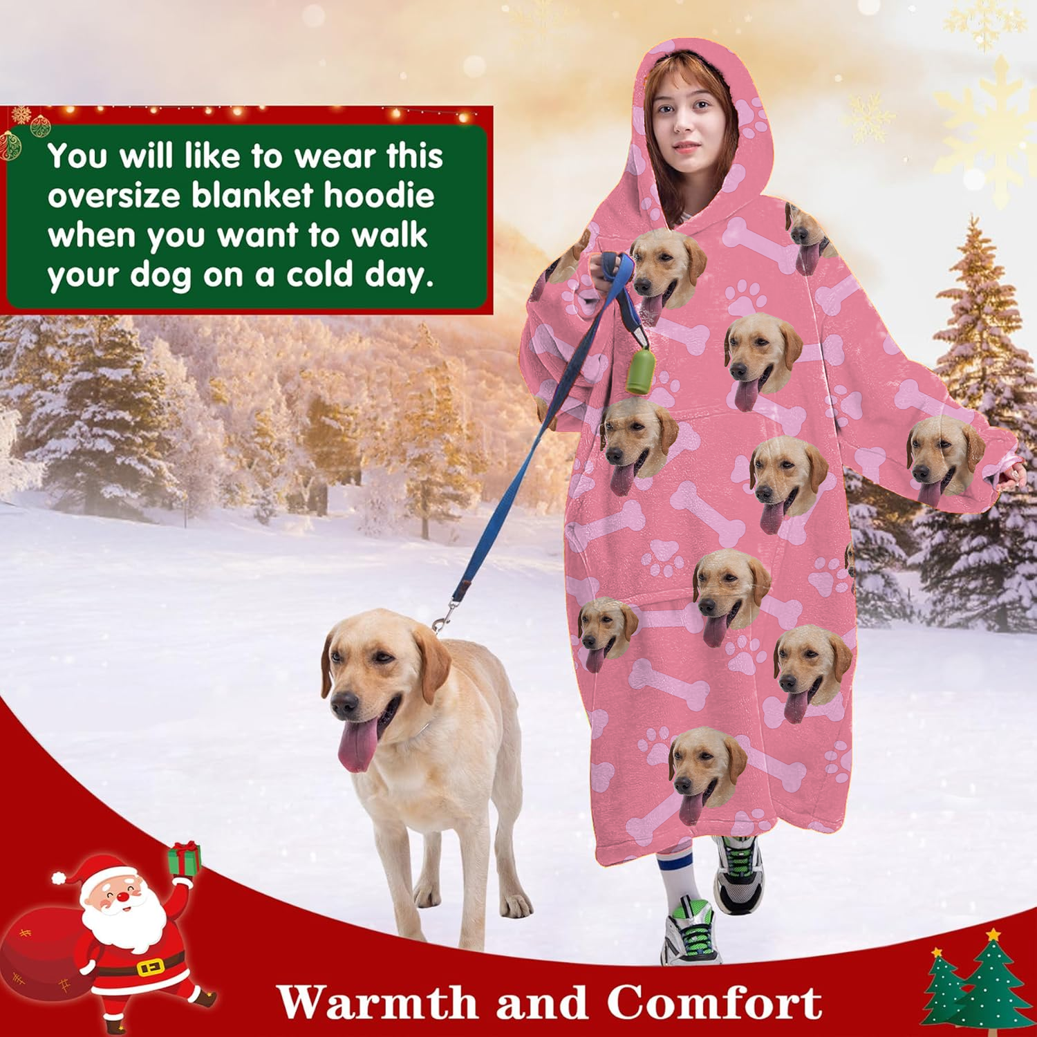 Personalized Blanket Hoodie With Dog Cat Photo Oversized Sweatshirt Blanket Warm Cozy Star Hooded Blanket