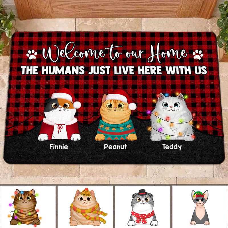 Welcome To Our Home Checkered Pattern Cats Personalized Doormat