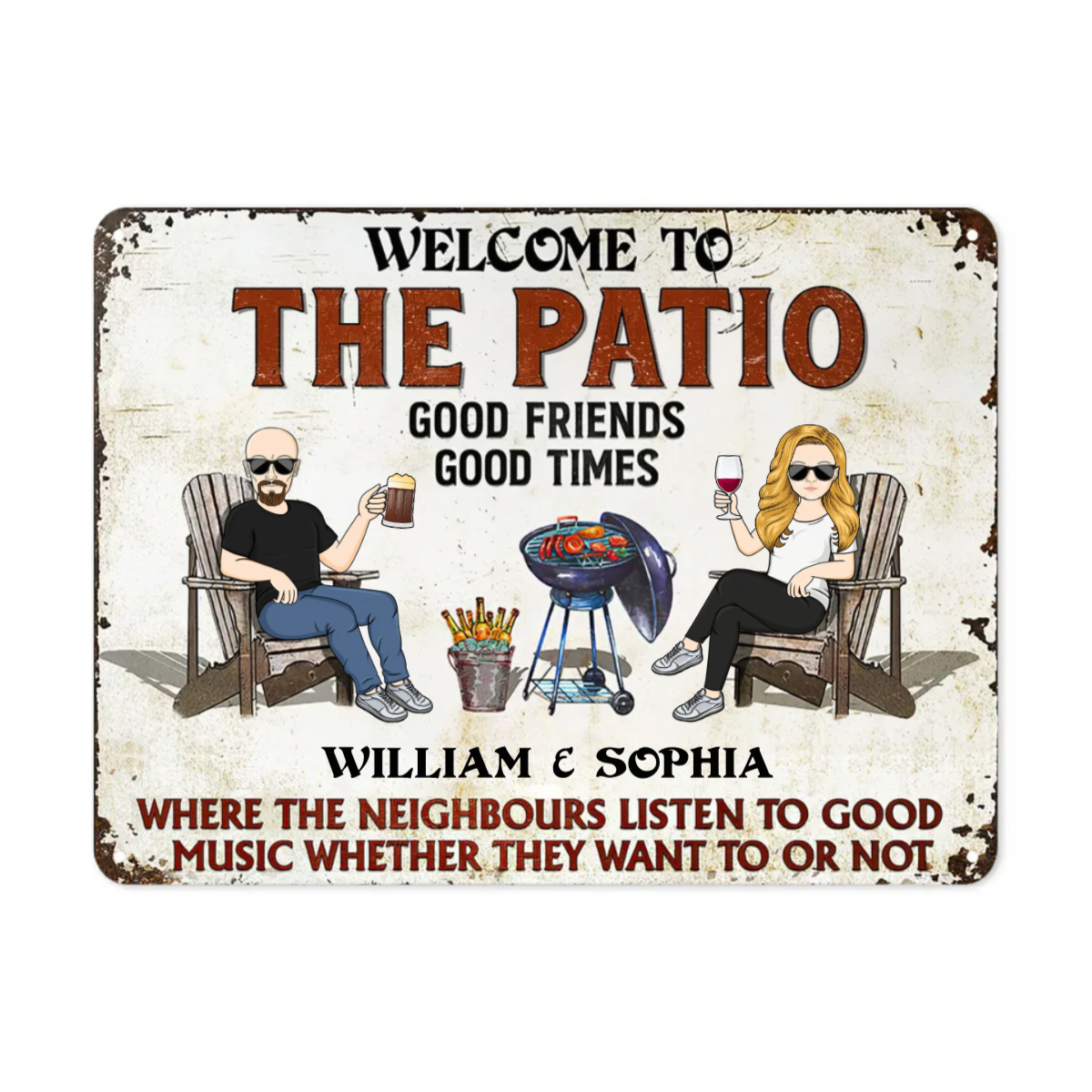 Patio Grilling Listen To The Good Music Couple Husband Wife - Backyard Sign - Personalized Custom Classic Metal Signs
