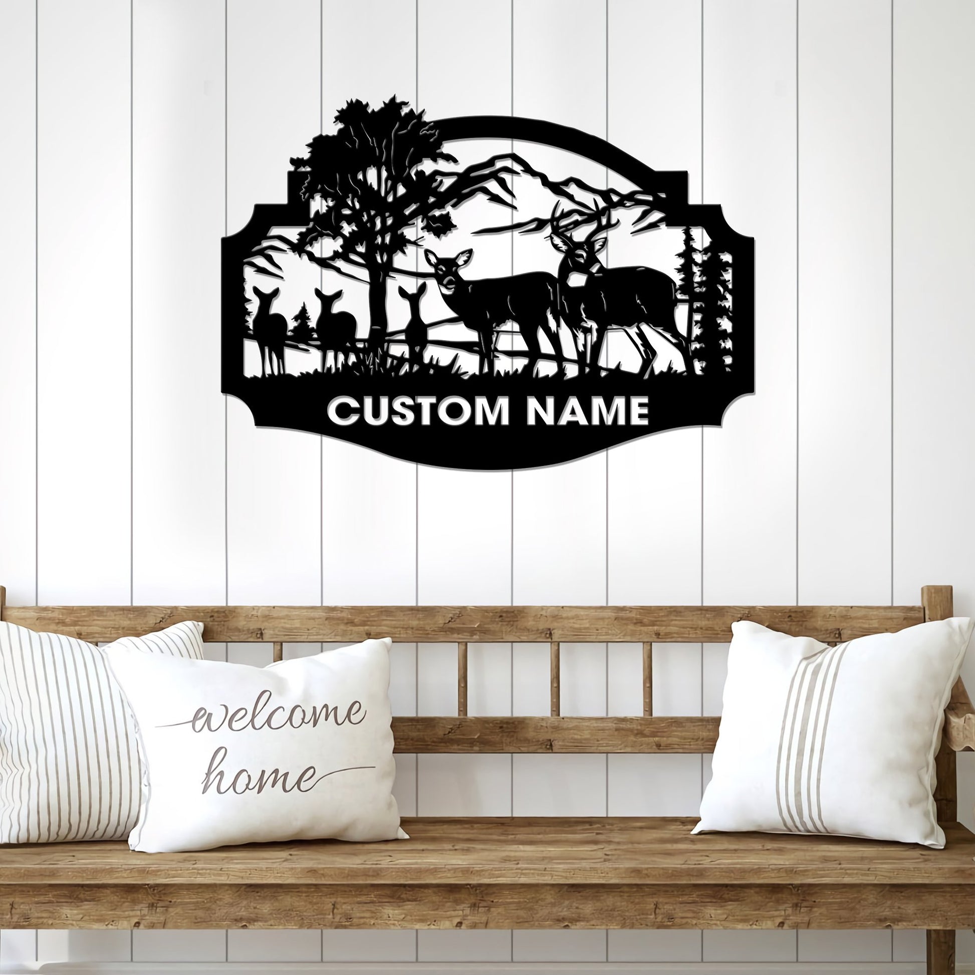 Welcome Whitetails Deer Sign Custom Name Metal Wall Art