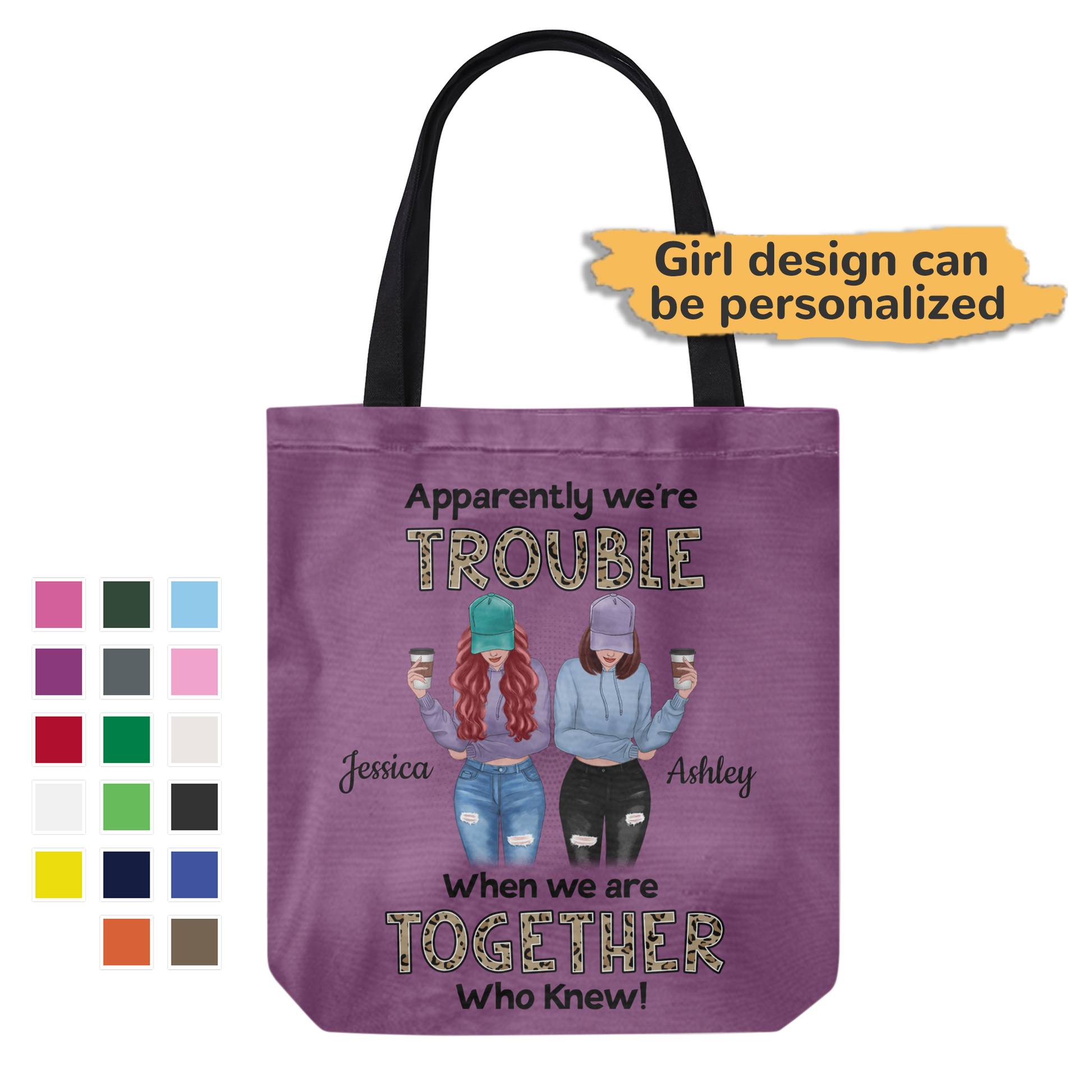 We're Trouble Besties Front View Personalized Canvas Bag