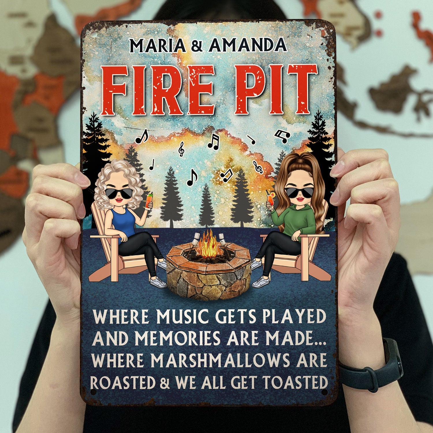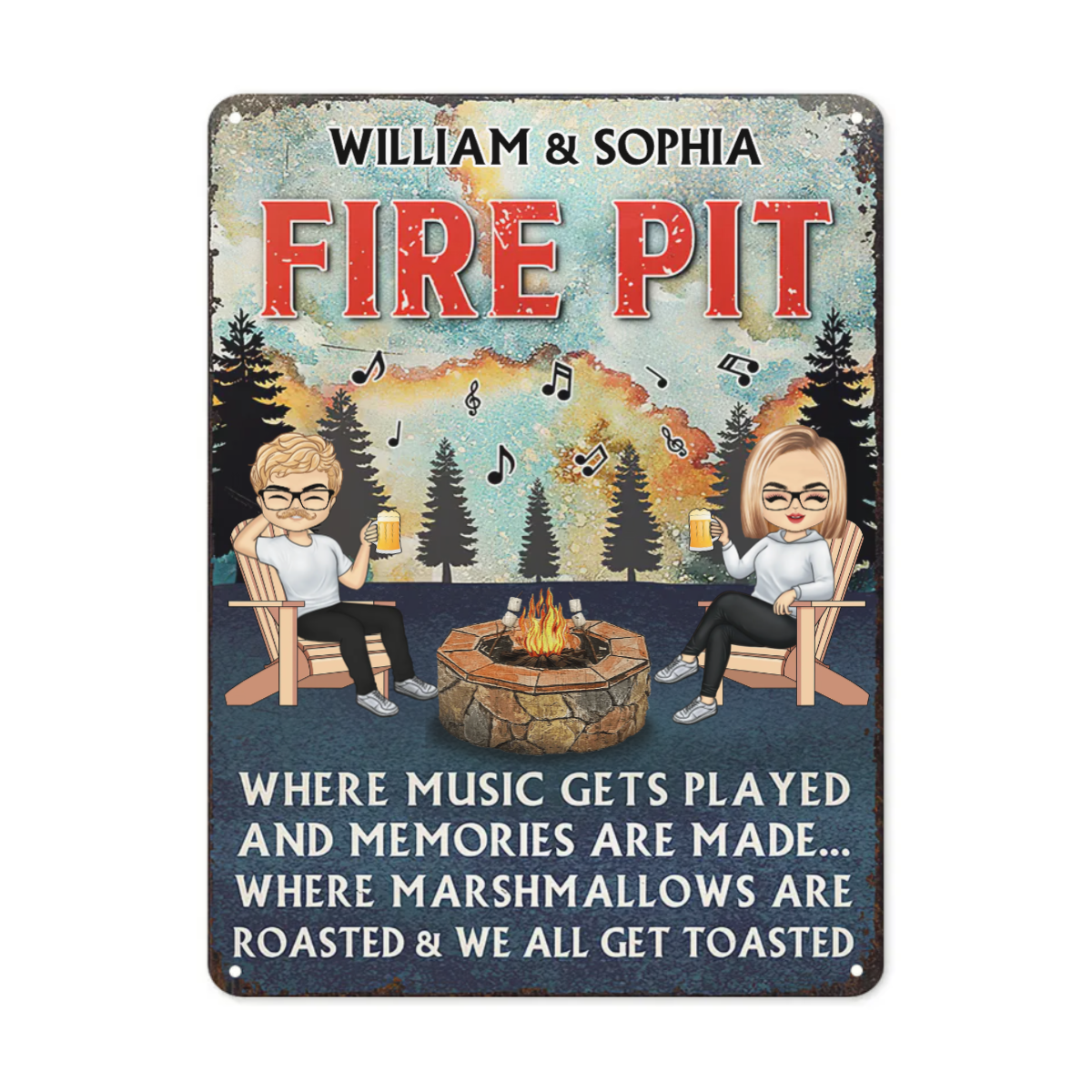 Where Music Gets Played And Memories Are Made Chibi Couple - Fire Pit Patio Garden Backyard Decoration - Personalized Custom Classic Metal Signs