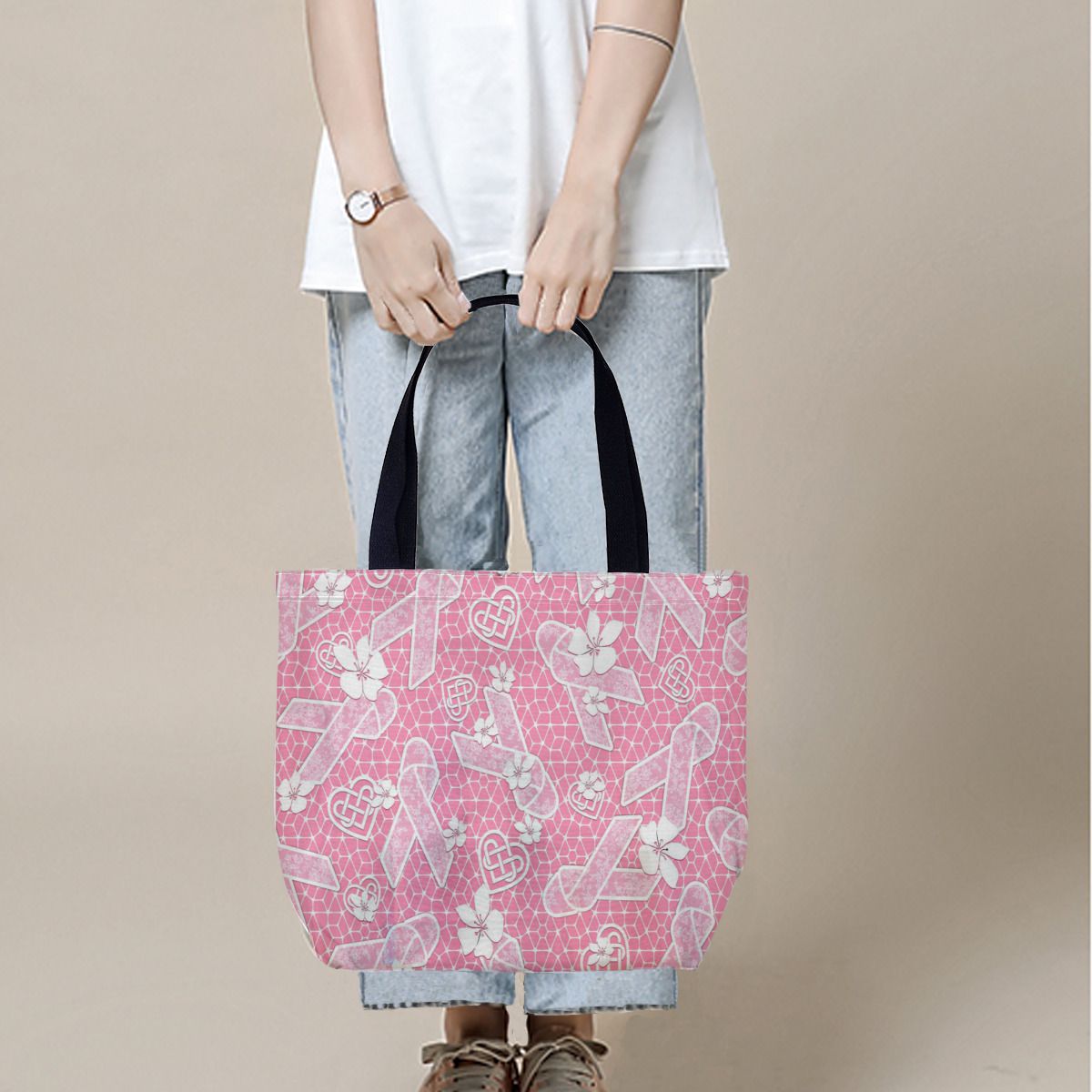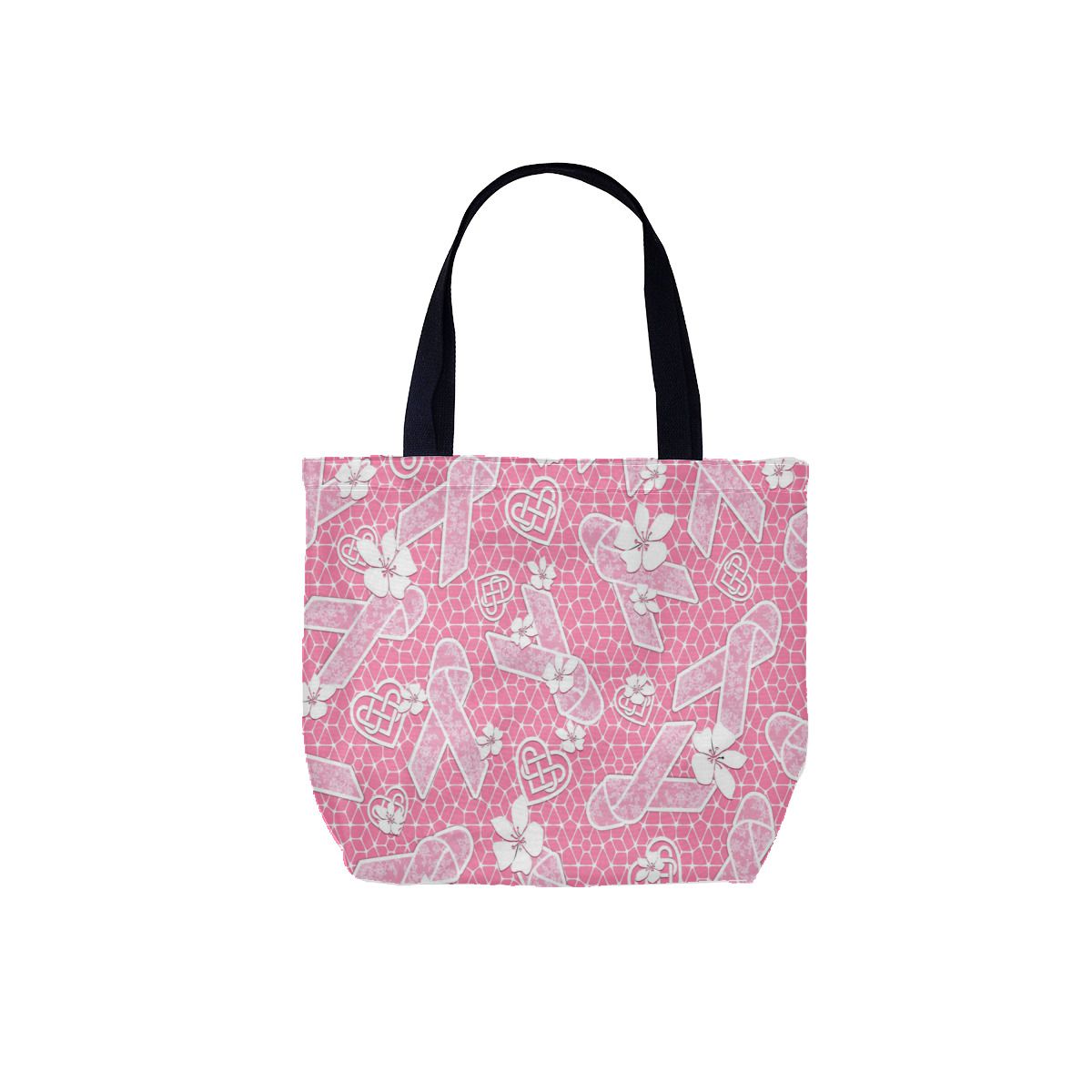 White Lace Pink Breast Cancer Awareness Canvas Bag No.3BRIGK