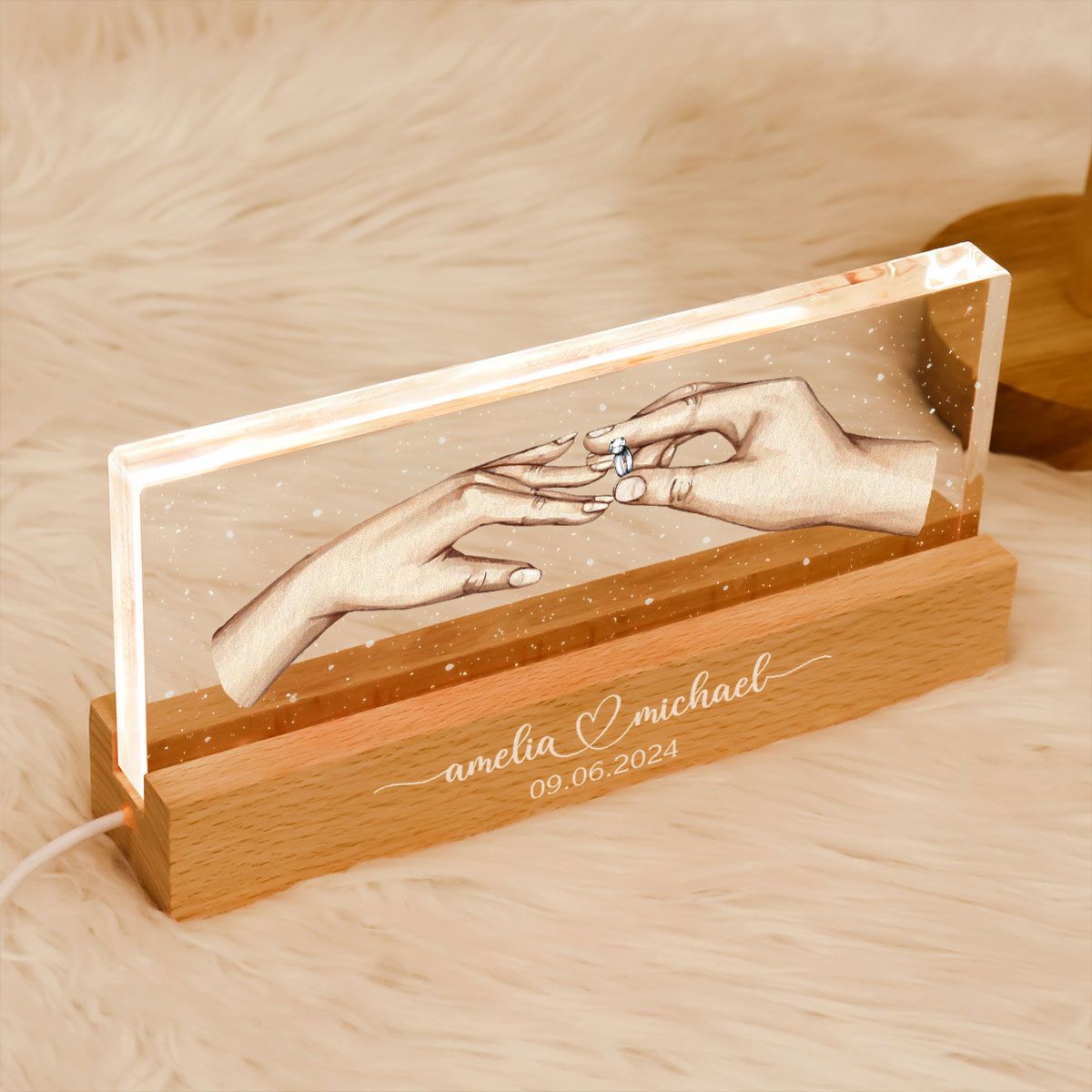 Will You Marry Me? She Said Yes! Personalized Acrylic Block LED Night Light, Marriage Proposal, Newly Engaged Present, Just Engaged Gifts for Couples