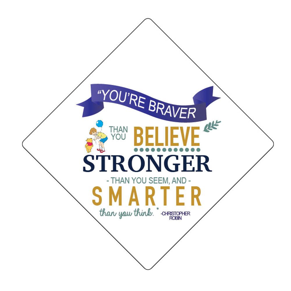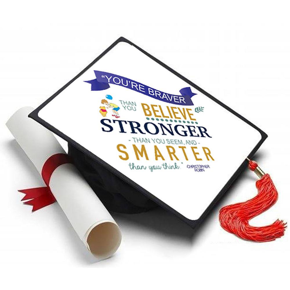A Tassel Topper is the ultimate form of self expression and is the professional way to decorate your graduation cap. We print your design on a durable sheet of plastic that fits directly on top of your graduation cap with the help of our adhesives. The Tassel Topper won't damage your grad cap in any way and is a sure way to stand out in the crowd at your graduation ceremony. They leave room for the turning of the tassel part of the ceremony and they can be removed or reattached as many times as needed. They also last forever as the perfect graduation keepsake that can framed or displayed. (displays sold separately).