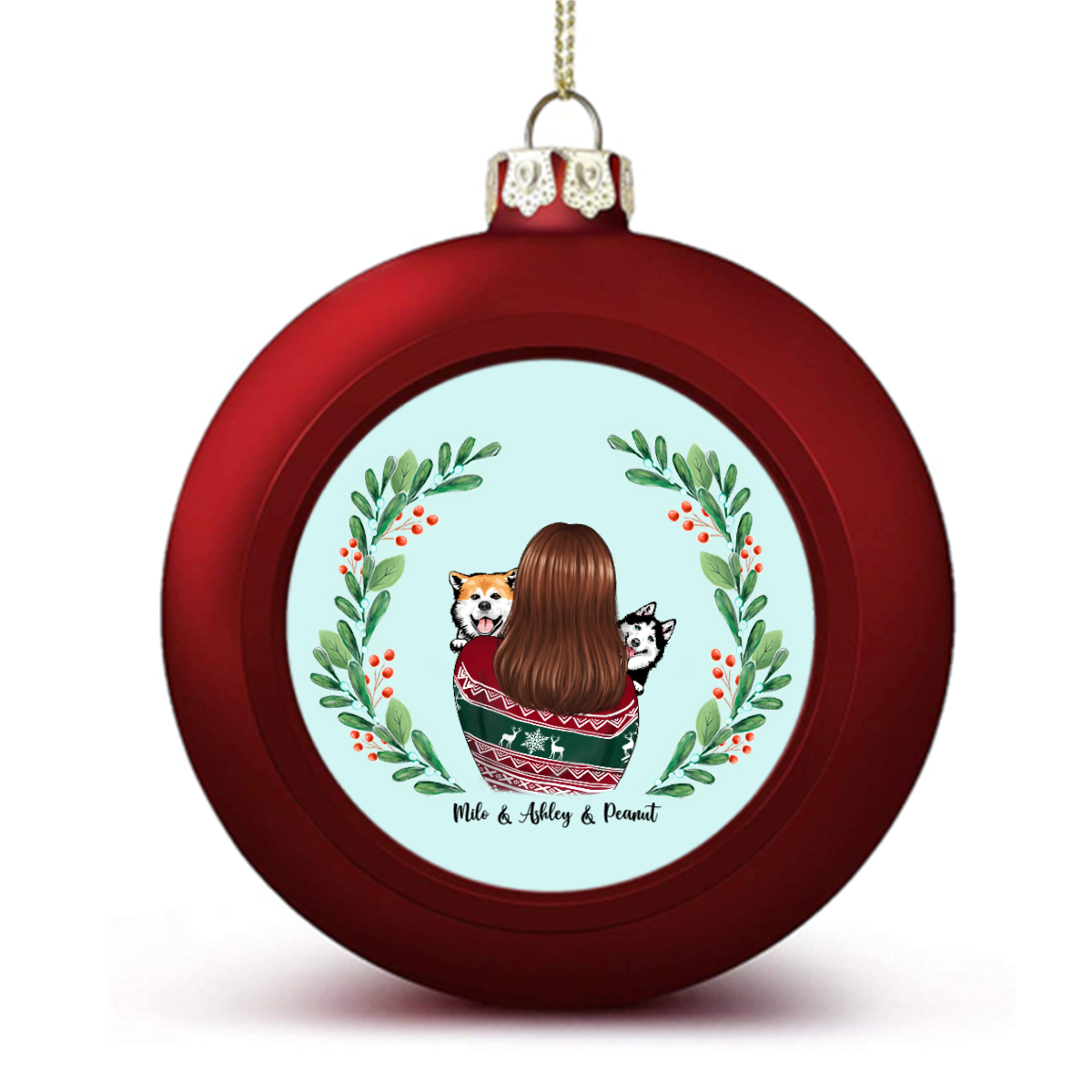 Woman Holding Dog Cat Christmas Personalized Ball Ornaments