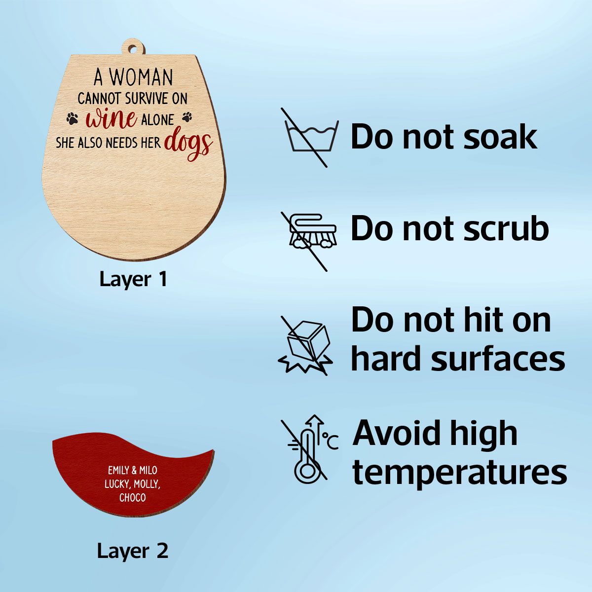 Woman Loves Wine and Dogs Personalized 2-Layered Wooden Ornament, Christmas Gift for Dog Moms