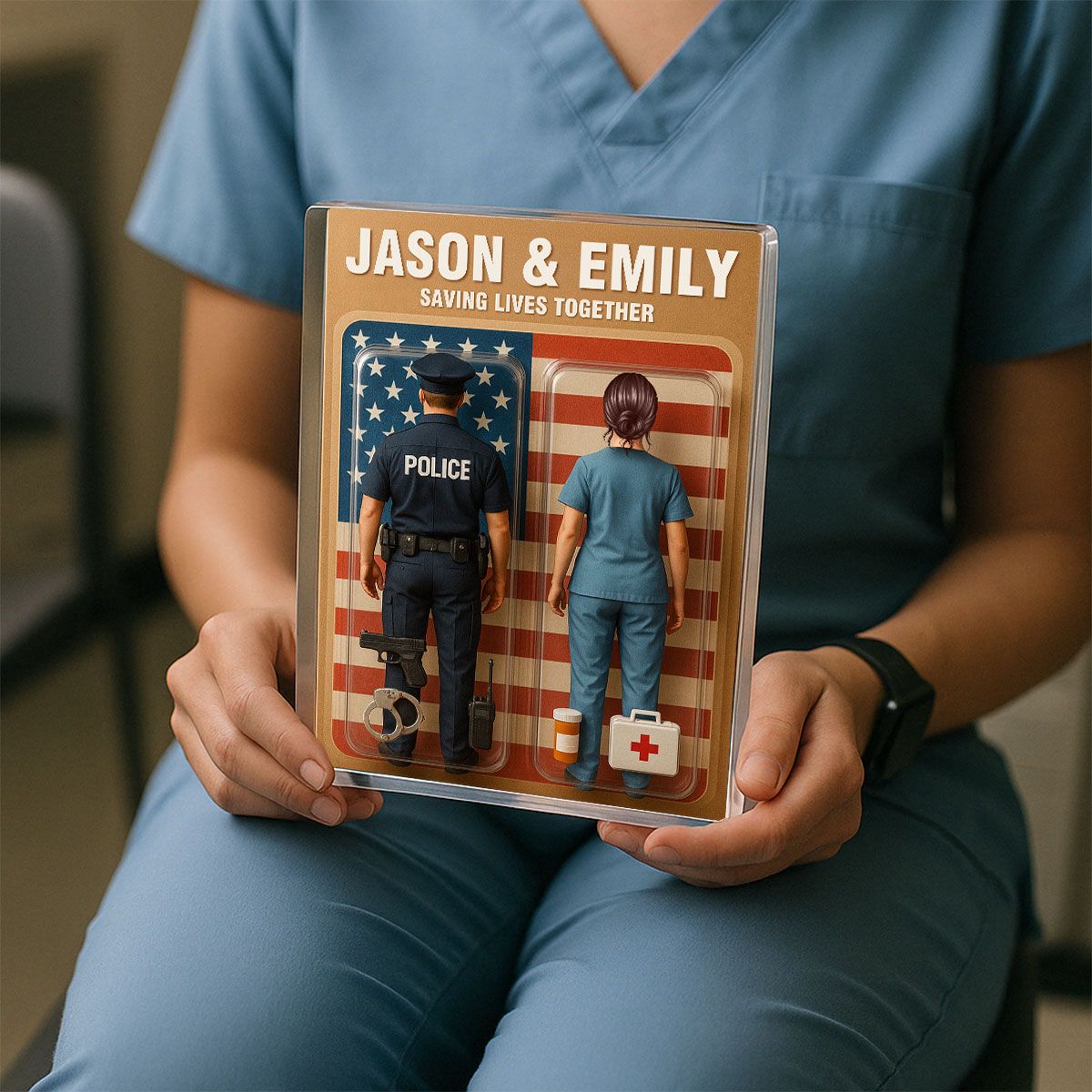 You & Me We Got This Police & Nurse Couple Toy Box Figures Style Personalized Acrylic Block Plaque
