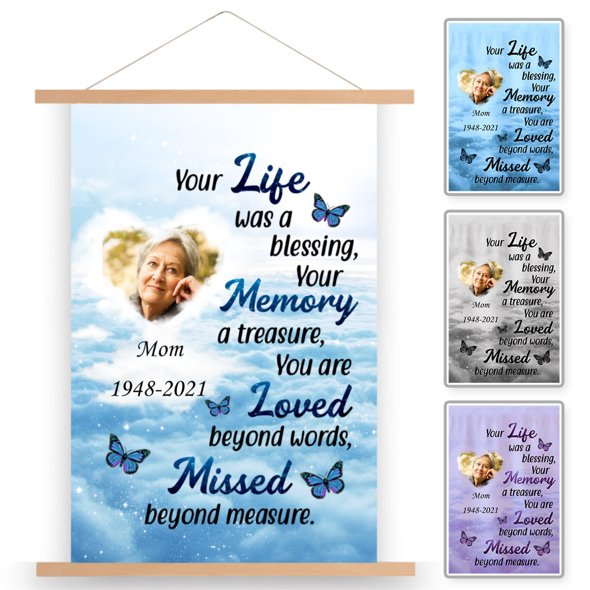 Your Life Was A Blessing Personalized Memorial Scroll Painting With Wooden Poster Hanger
