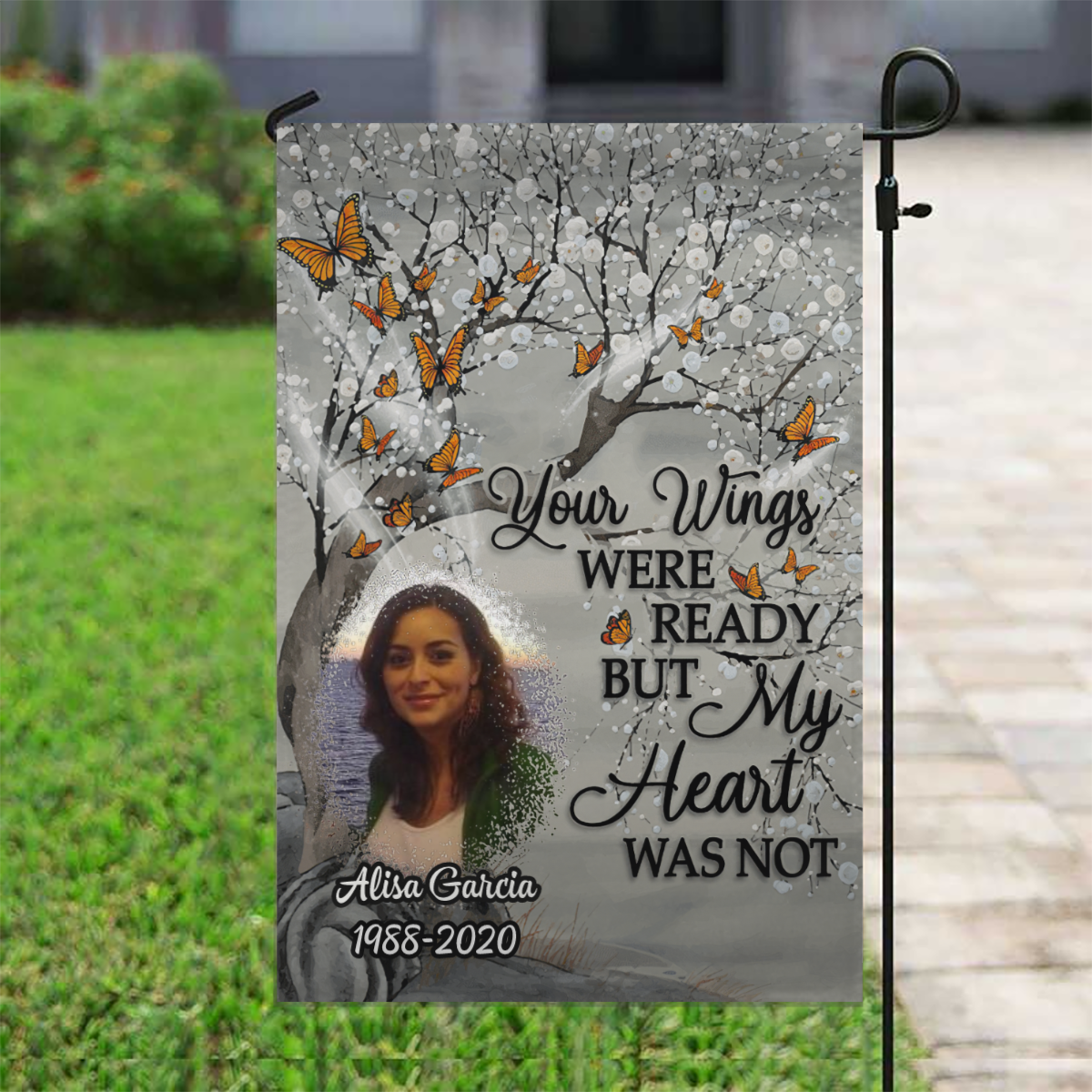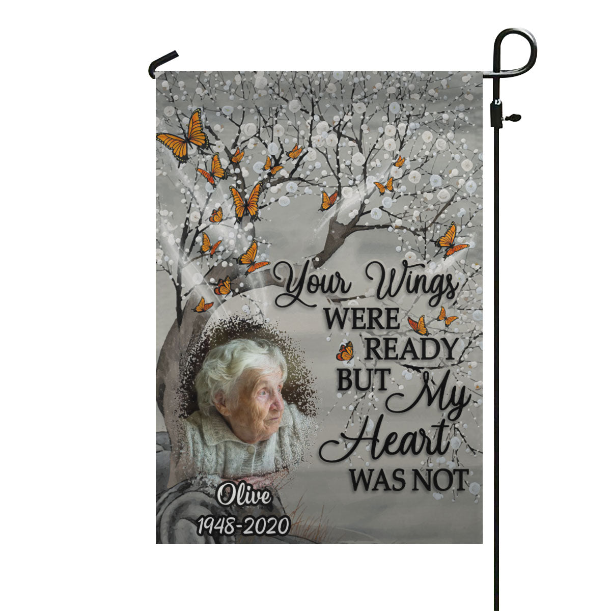 Your Wings Were Ready But My Heart Was Not Photo Personalized Memorial Garden Flag