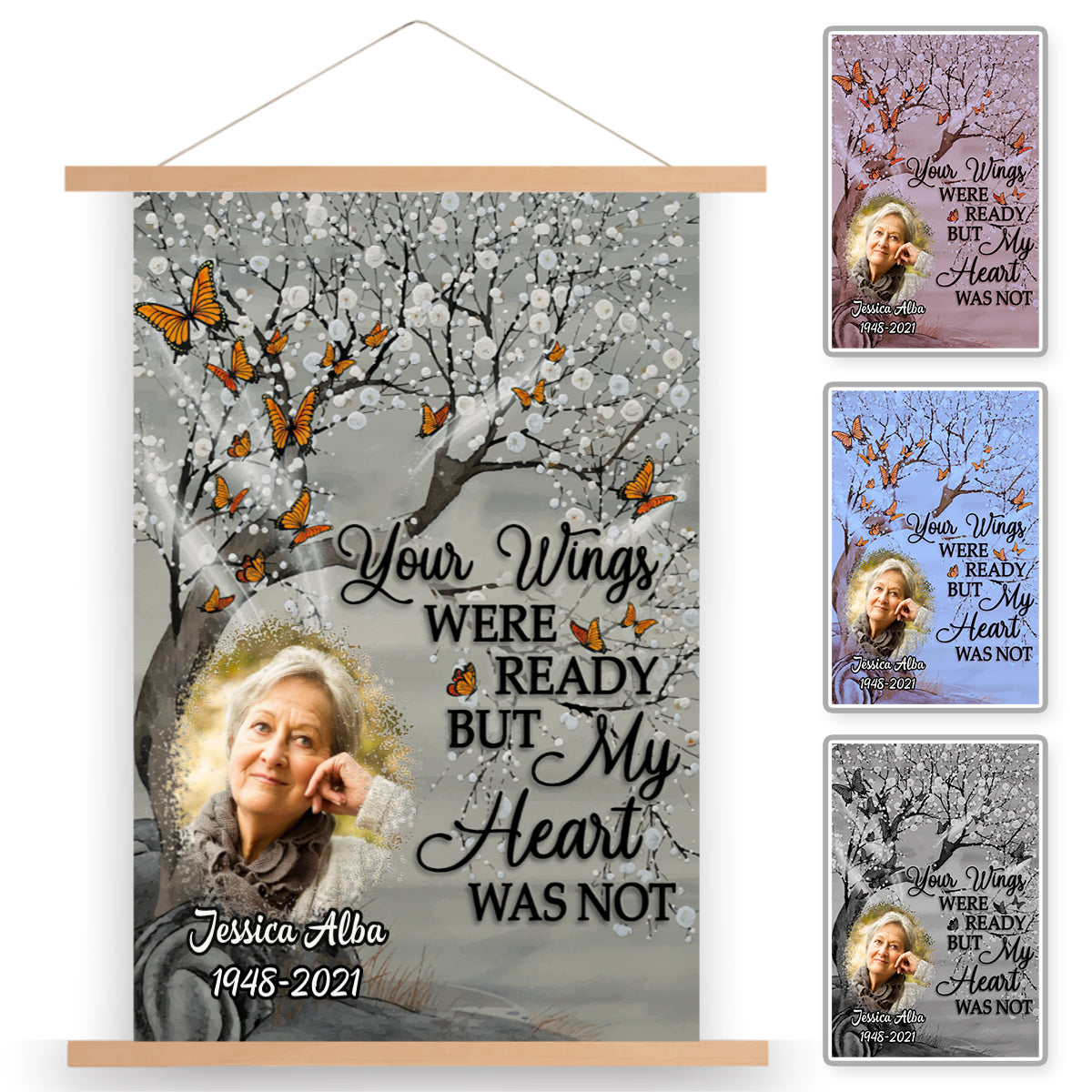 Your Wings Were Ready But My Heart Was Not Photo Personalized Memorial Scroll Painting With Wooden Poster Hanger