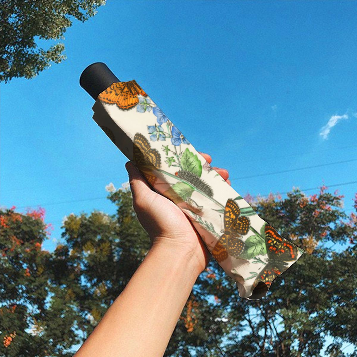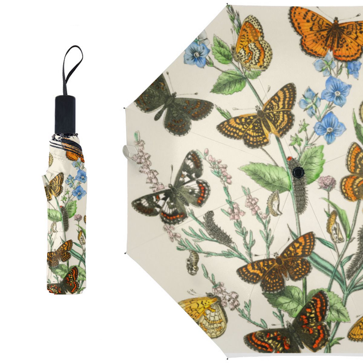 Butterflies And Flowers Vintage Illustration 1 Brushed Polyester Umbrella No.CUNKDN