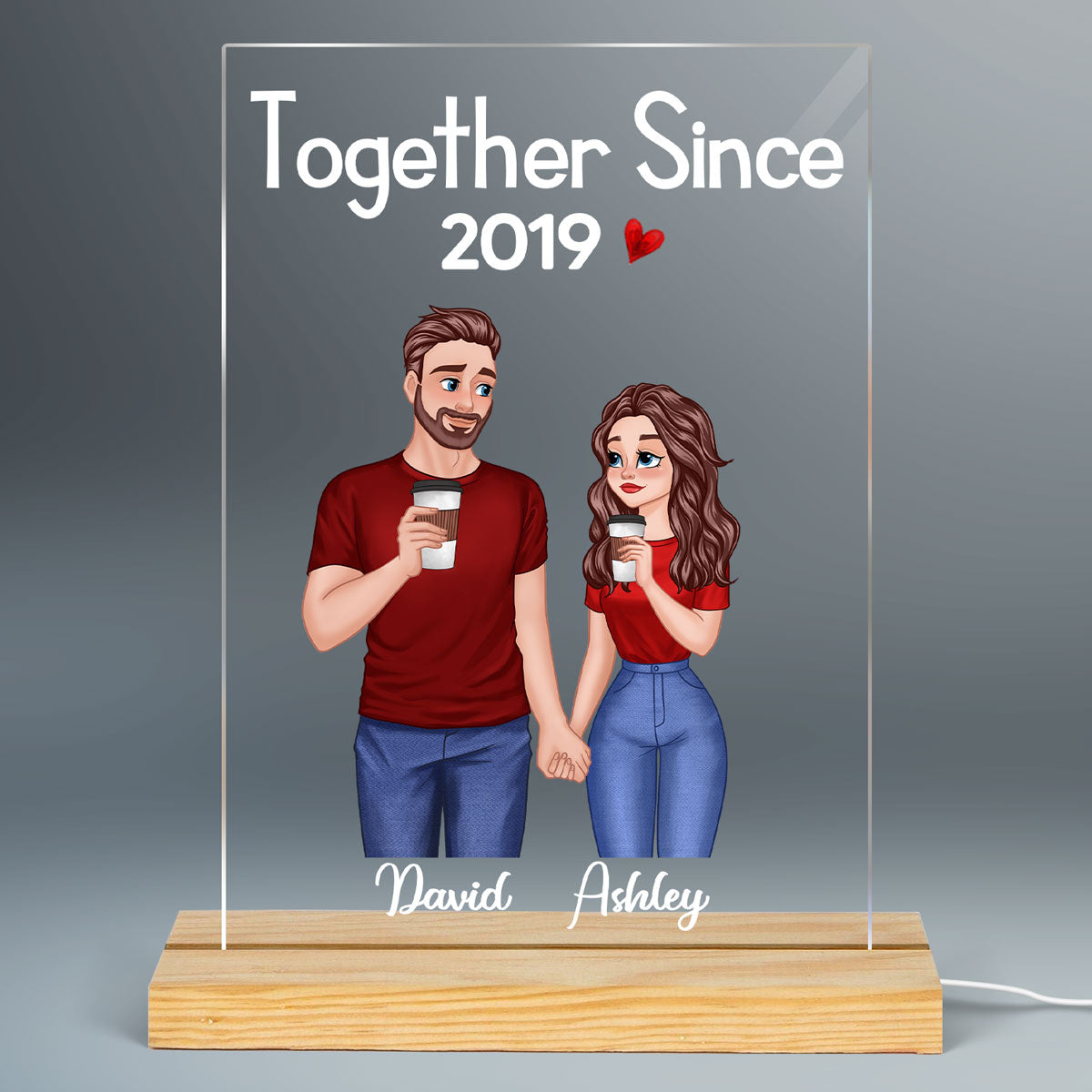 Cartoon Couple Hand In Hand Gift For Him Gift For Her Personalized Rectangle Acrylic Plaque With LED Night Light