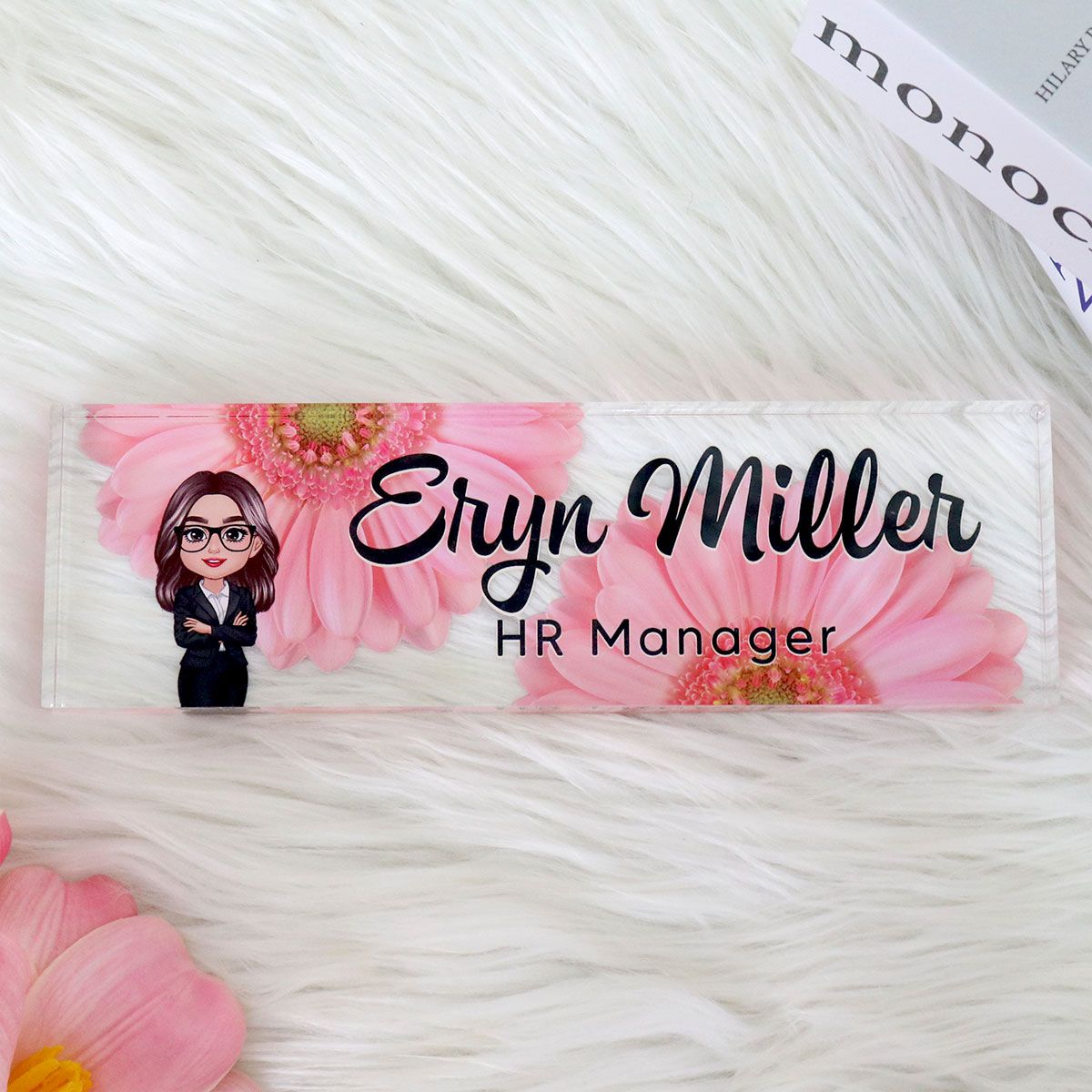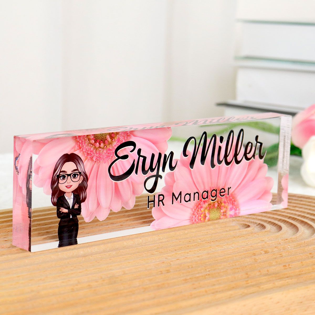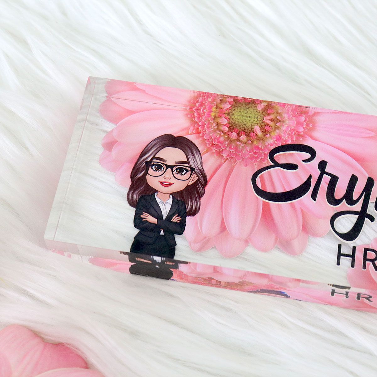 Daisy Flowers Woman Office Personalized Acrylic Desk Name Plate, Office Desk Decor, Gift For Colleagues, Coworkers, Boss, Nurses, Doctors, Healthcare Workers, Police, Firefighters