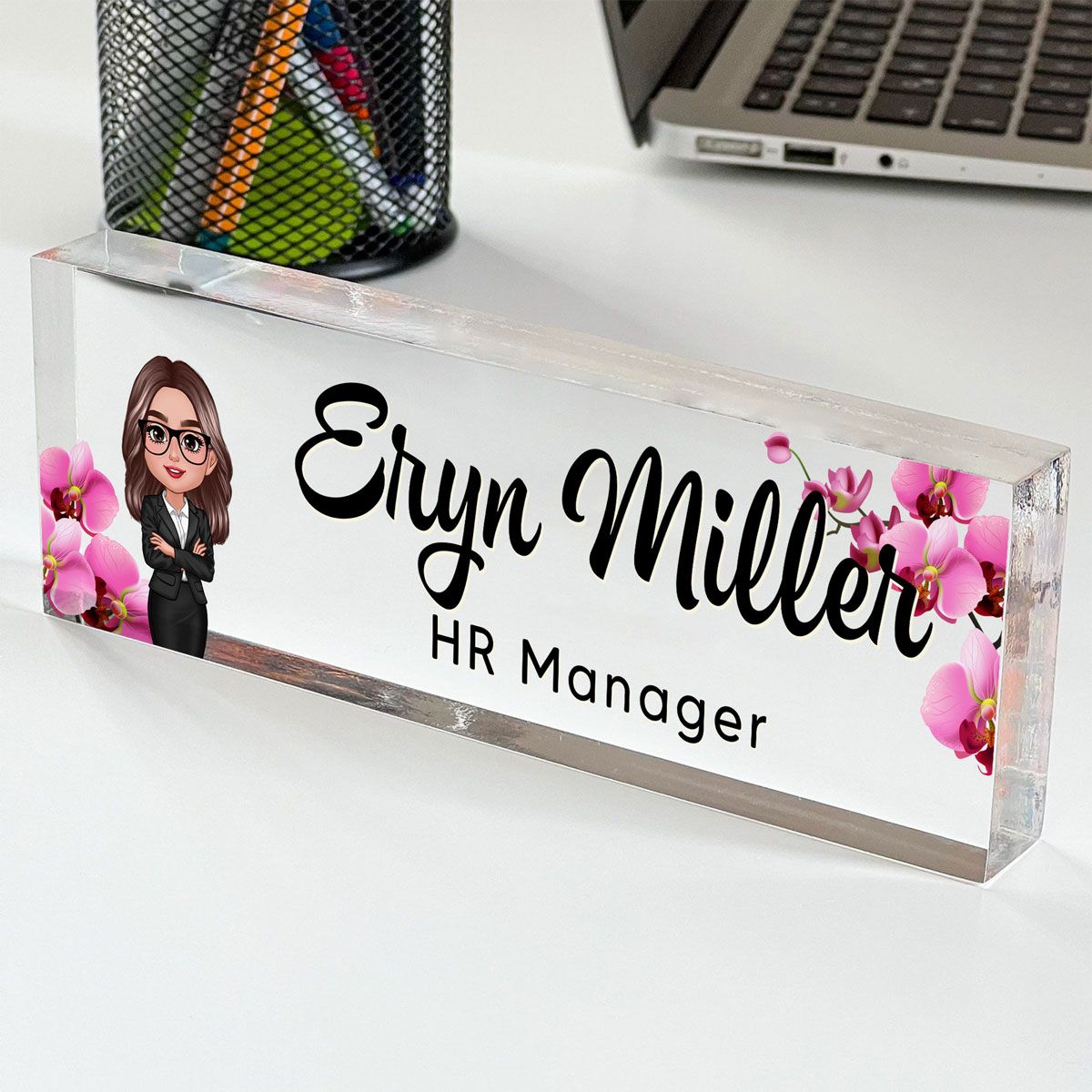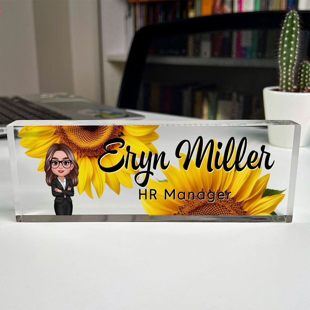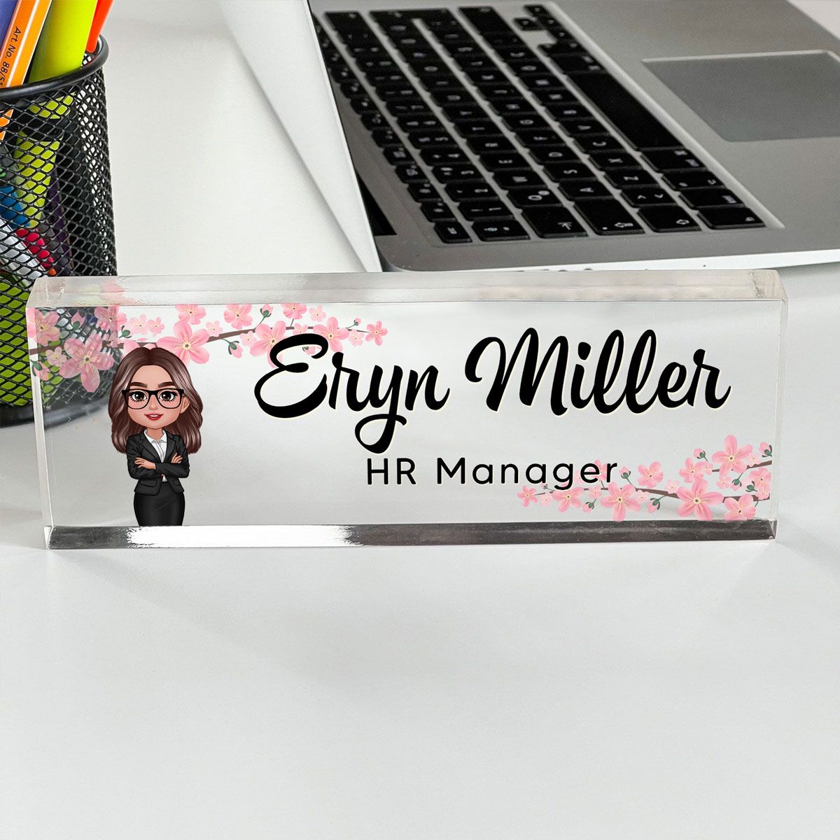 Daisy Flowers Woman Office Personalized Acrylic Desk Name Plate, Office Desk Decor, Gift For Colleagues, Coworkers, Boss, Nurses, Doctors, Healthcare Workers, Police, Firefighters