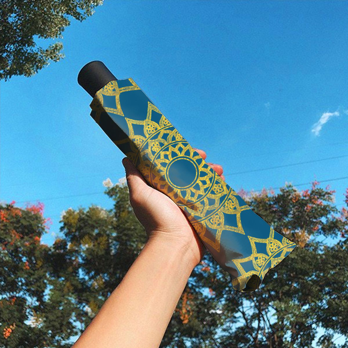 Elegant Blue Fine Gold Floral Mandala Christmas Brushed Polyester Umbrella No.QDFXRT