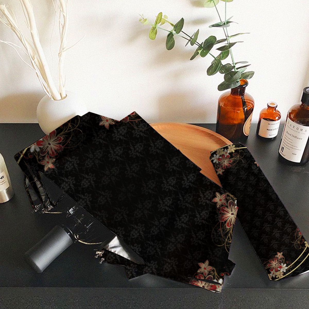 Gold And Red Floral Brushed Polyester Umbrella No.PA96KX