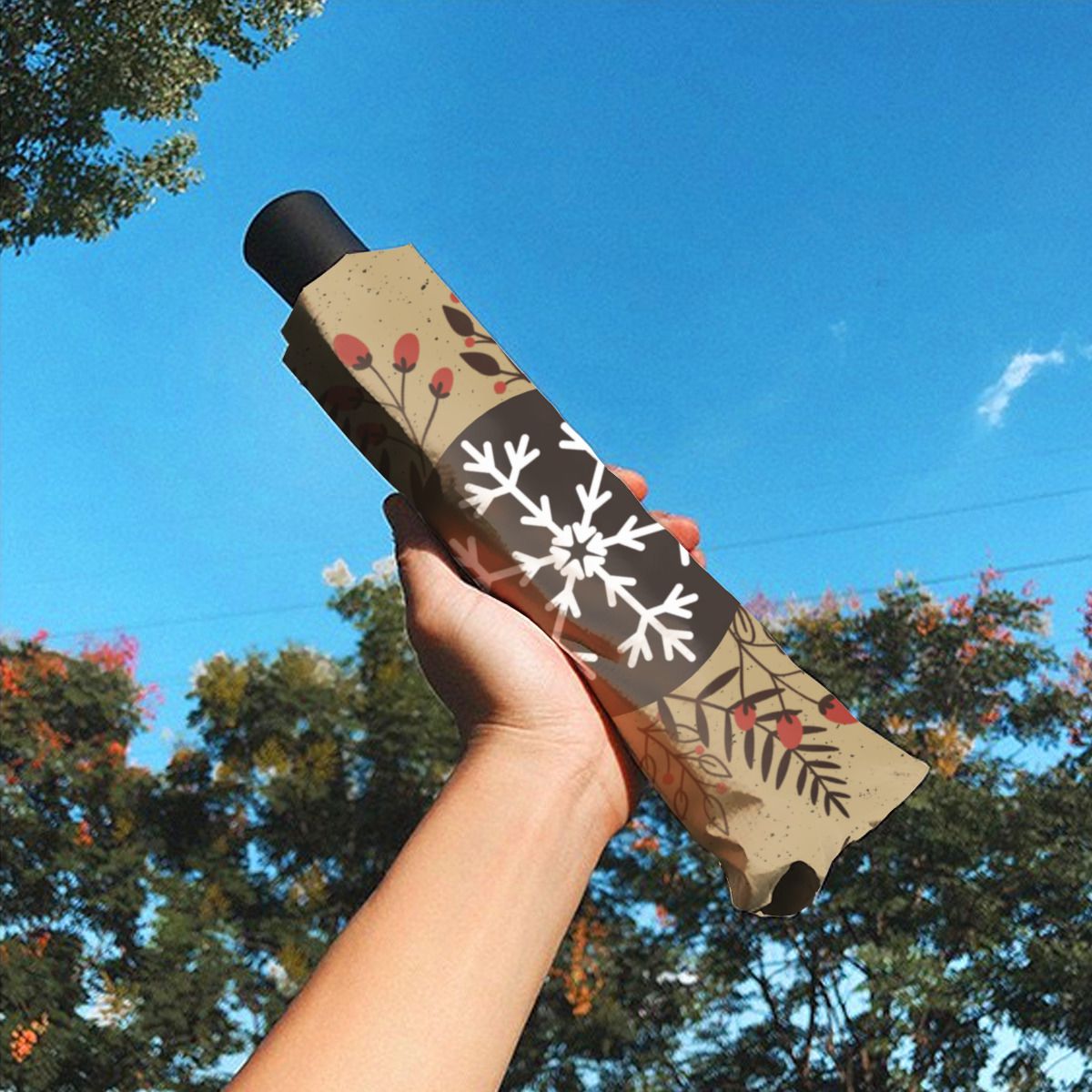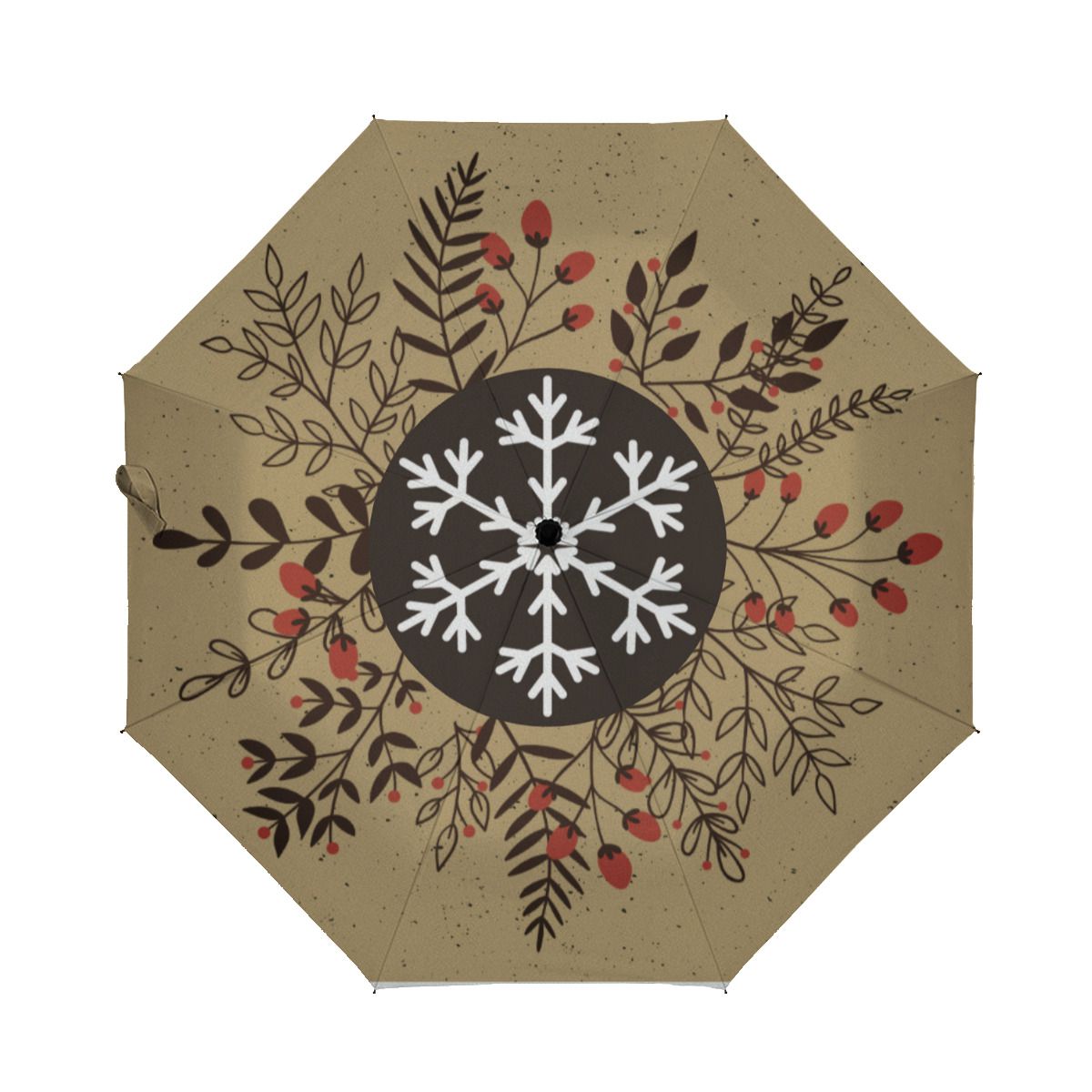 Rustic Christmas Floral Snowflake Holiday Brushed Polyester Umbrella No.FCTH4J