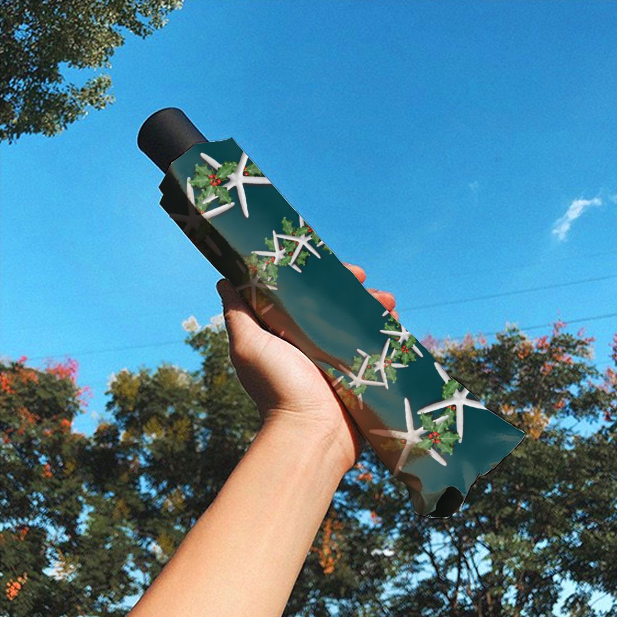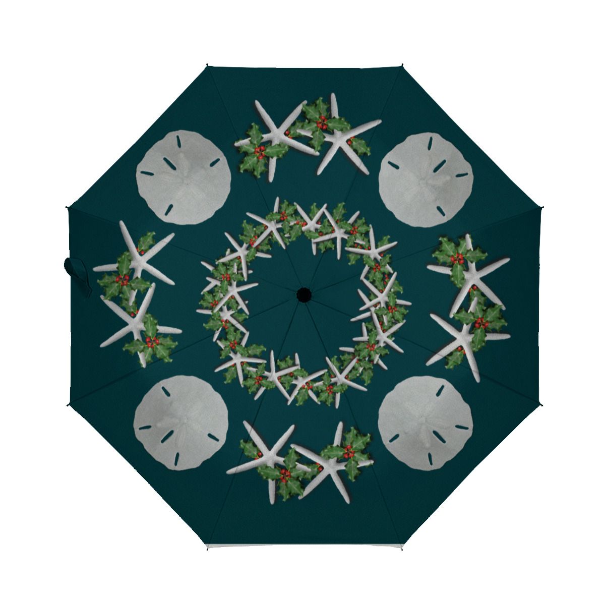 Tropical Christmas Sand Dollars Starfish Teal Brushed Polyester Umbrella No.3Q3BBP