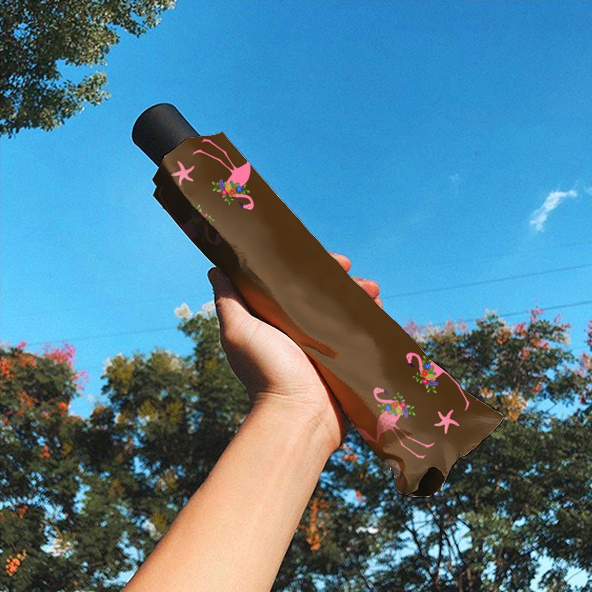 Tropical Flamingos All Around Brown Christmas Brushed Polyester Umbrella No.6P7QCV