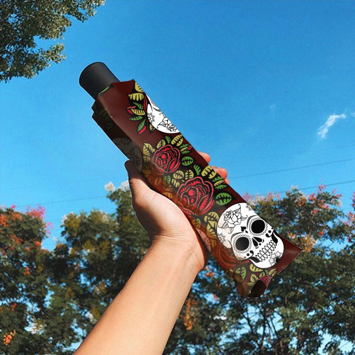 Umbrella Christmas Retro Skull Roses Chic No.7KZZAL