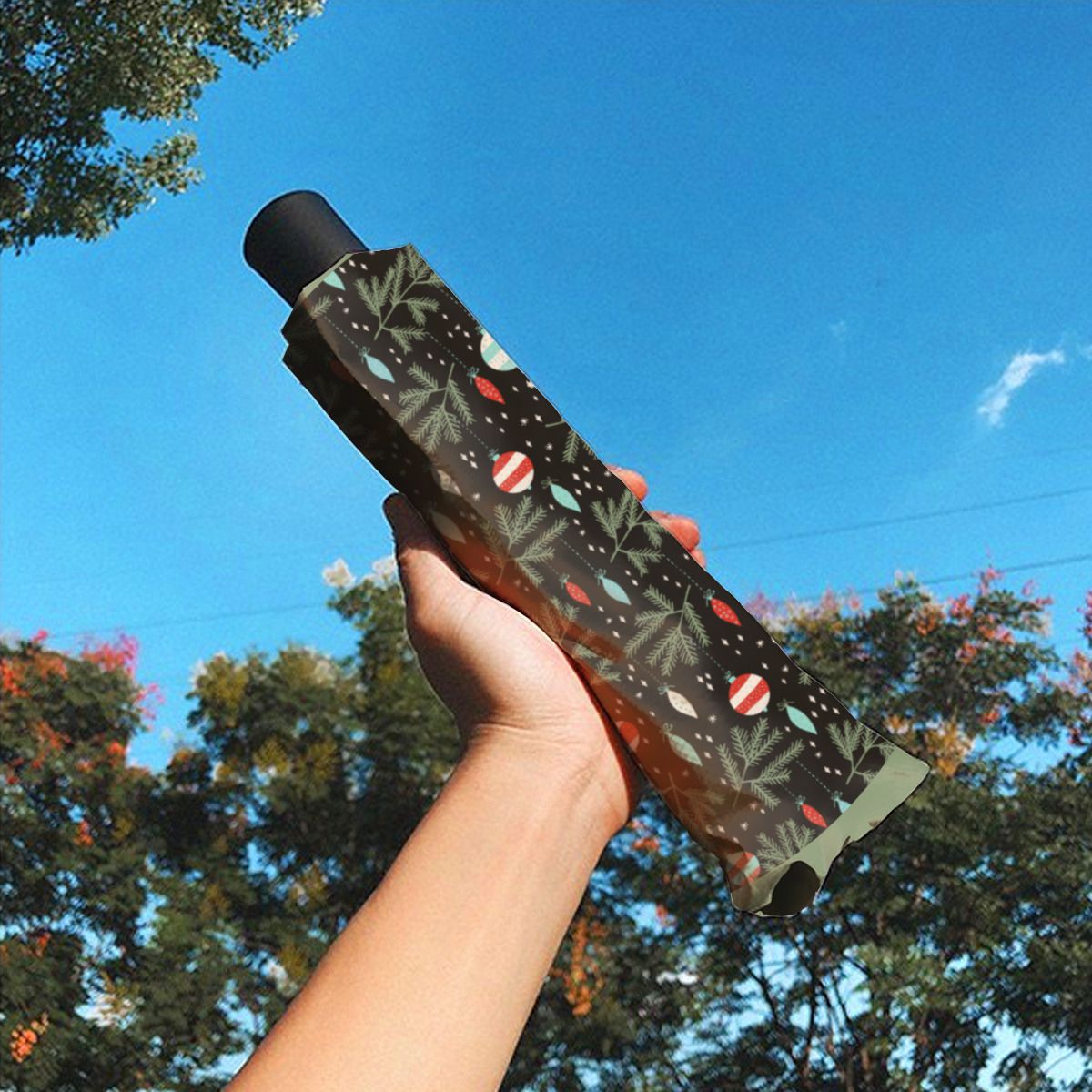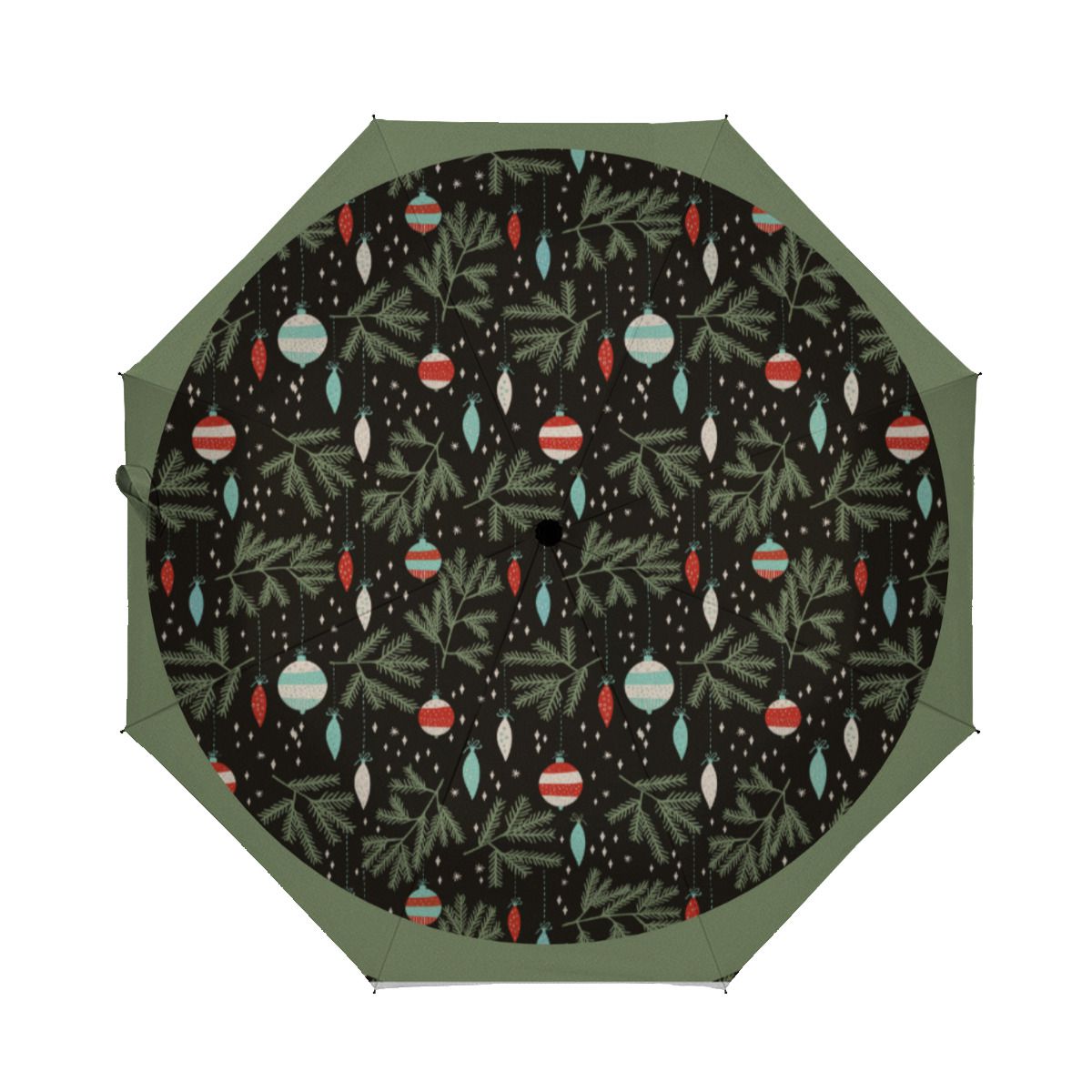 Vintage Ornaments Black Red Patterned Christmas Brushed Polyester Umbrella No.VFWBCS